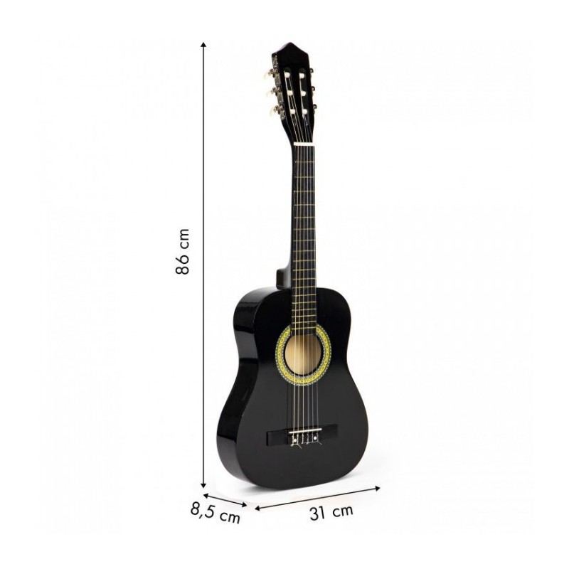 Copiii adora muzica de la o varsta frageda, sunt interesati de sunete, canta, danseaza si incearca sa cante la instrumente simple. Daca copilul tau priveste muzicienii, cantand in acelasi timp cu entuziasm si admiratie, se preface ca a inventat tobe sau chitara, inseamna ca adevaratul talent muzical se poate maturiza acasa. Merita sa sustii astfel de interese si sa le dezvolti de la inceput alegand jucariile potrivite. O chitara Ecotoys se poate dovedi primul pas catre o mare pasiune. Chitara a fost conceputa pentru a avea toate caracteristicile unei chitare de dimensiuni mari.