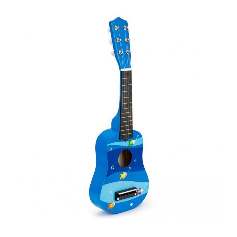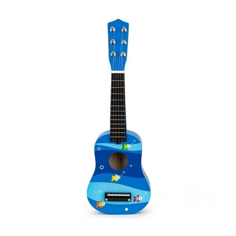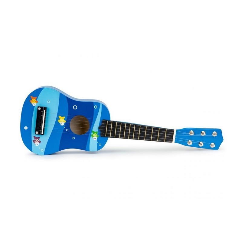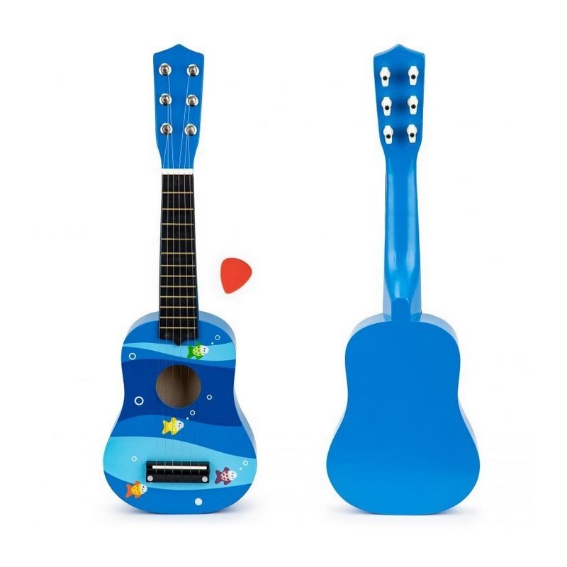 Copiii adora muzica de la o varsta frageda, sunt interesati de sunete, canta, danseaza si incearca sa cante la instrumente simple. Daca copilul tau priveste muzicienii, cantand in acelasi timp cu entuziasm si admiratie, se preface ca a inventat tobe sau chitara, inseamna ca adevaratul talent muzical se poate maturiza acasa. Merita sa sustii astfel de interese si sa le dezvolti de la inceput alegand jucariile potrivite. O chitara Ecotoys se poate dovedi primul pas catre o mare pasiune. Chitara a fost conceputa pentru a avea toate caracteristicile unei chitare de dimensiuni mari. Are 6 corzi si 12 „taste” pe gat, cu posibilitatea de acordare.