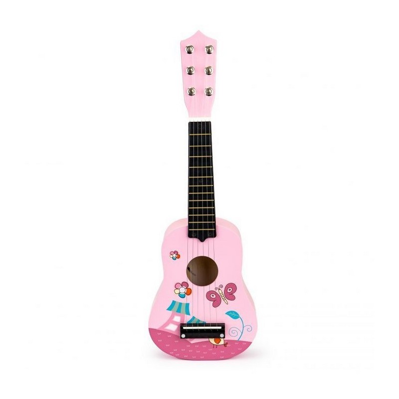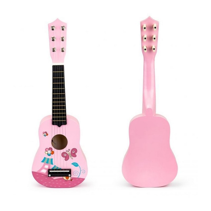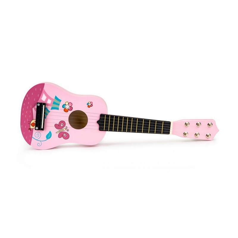 Copiii adora muzica de la o varsta frageda, sunt interesati de sunete, canta, danseaza si incearca sa cante la instrumente simple. Daca copilul tau priveste muzicienii, cantand in acelasi timp cu entuziasm si admiratie, se preface ca a inventat tobe sau chitara, inseamna ca adevaratul talent muzical se poate maturiza acasa. Merita sa sustii astfel de interese si sa le dezvolti de la inceput alegand jucariile potrivite. O chitara Ecotoys se poate dovedi primul pas catre o mare pasiune. Chitara a fost conceputa pentru a avea toate caracteristicile unei chitare de dimensiuni mari. Are 6 corzi si 12 „taste” pe gat, cu posibilitatea de acordare.