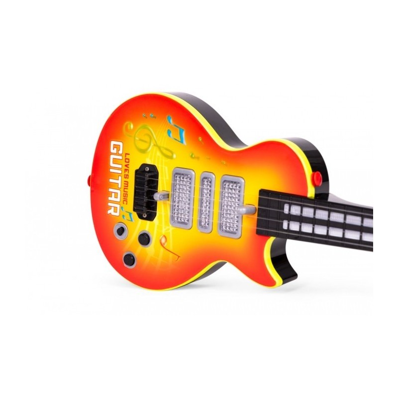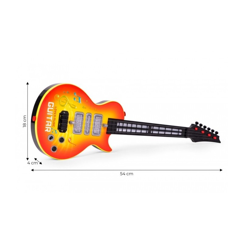 O chitara rock pentru copii este jucaria perfecta pentru micii muzicieni. Contine 8 melodii vesele si 8 sunete de instrumente care incurajeaza jocul creativ. Iluminarea LED creeaza efecte de iluminare dinamice care adauga un element vizual minunat jocului. Datorita senzorului cu infrarosu, lumina urmeaza ritmul degetului de pe corzile inferioare, ceea ce face jocul si mai interactiv. Corzile reglabile si cureaua de umar confortabila fac chitara usor de utilizat si confortabil de purtat.
