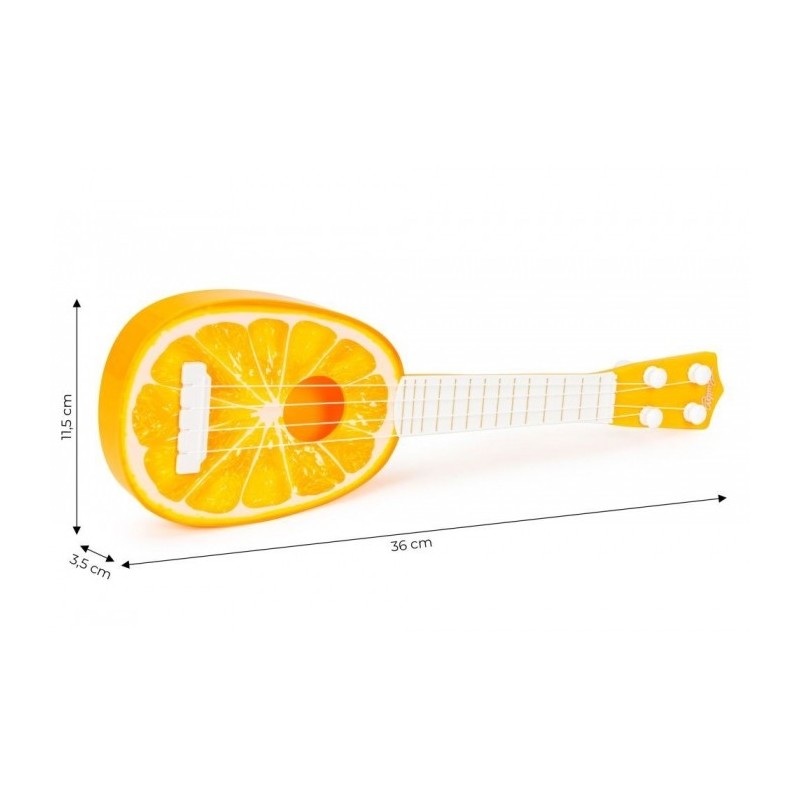 Ukulele se remarca prin modelul sau original cu tematica de portocala, care incurajeaza in plus invatarea si dezvolta simtul artistic. Aceasta este o alegere excelenta pentru copiii interesati de muzica si este primul pas in dezvoltarea talentelor muzicale.