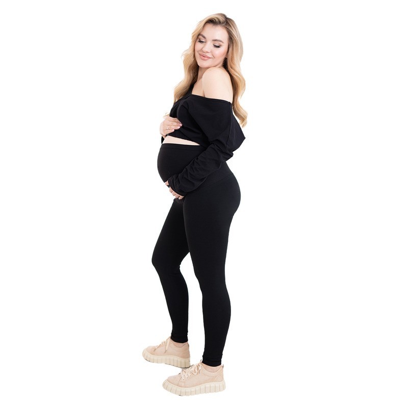 Colanti pentru gravide Cu talie speciala Certificati Oeko Tex Standard 100 Din bumbac si elastan Masura L Negru