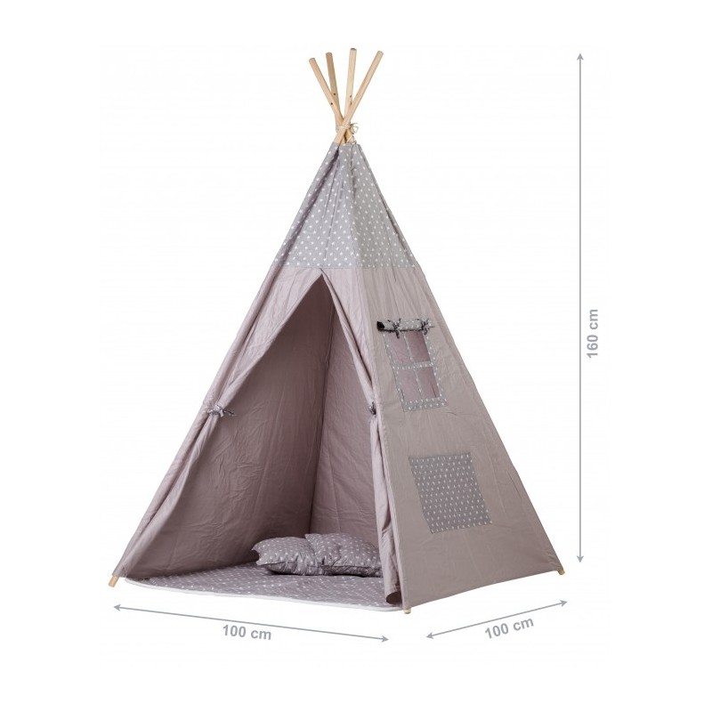 Cort de indieni TIPI-07 Ecotoys cu salteluta si perne - Grey Stars
