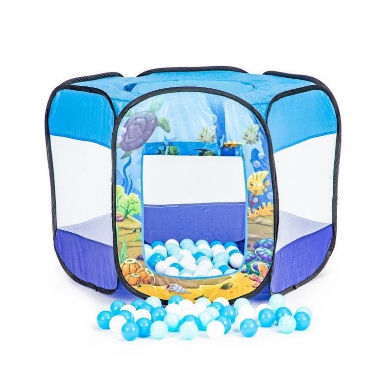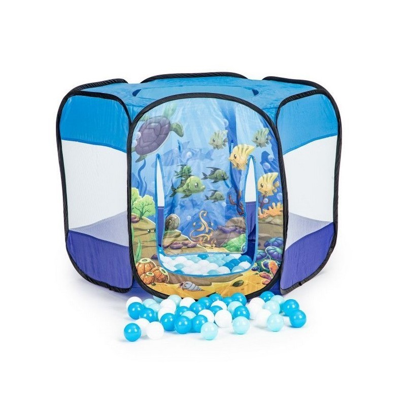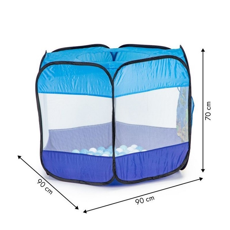Intr-o clipa, camera copiilor sau gradina ta se vor transforma intr-o lume subacvativa, in care copiii tai si prietenii lor isi vor petrece ore intregi distrandu-se. Cortul este plin de bile in culoarea albastru.