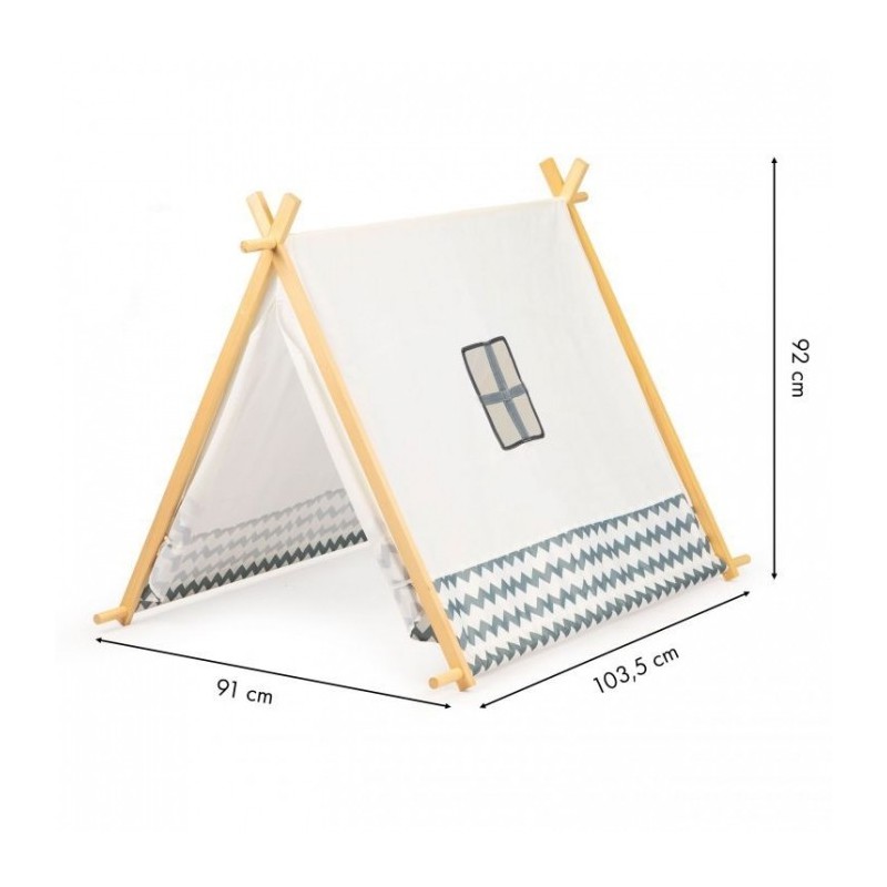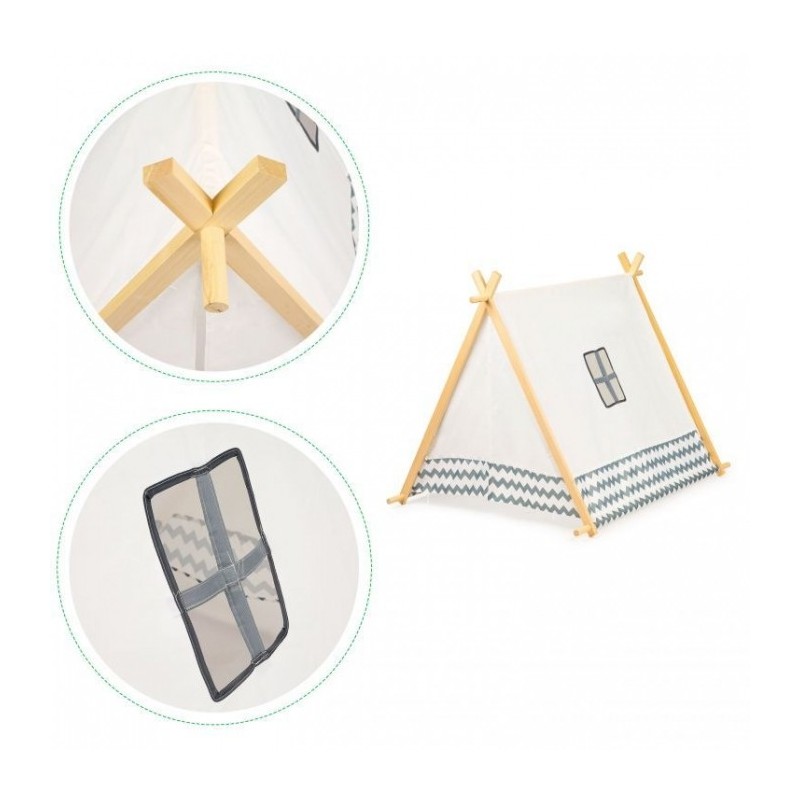 Cortul este fabricat din material poliesteric. El poate fi instalat atat in casa, cat si in gradina. Structura cortului este din lemm. Modelele de pe tipar ar trebui sa semene cu stilul indian. Intrarea are doua perdele si cortul prezinta si o fereastra mica pe partea laterala.