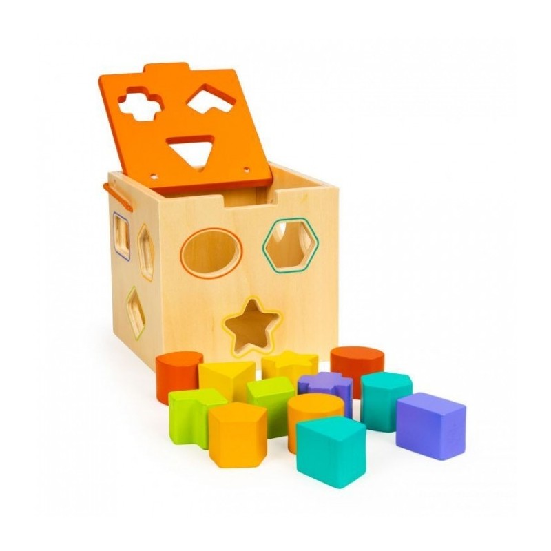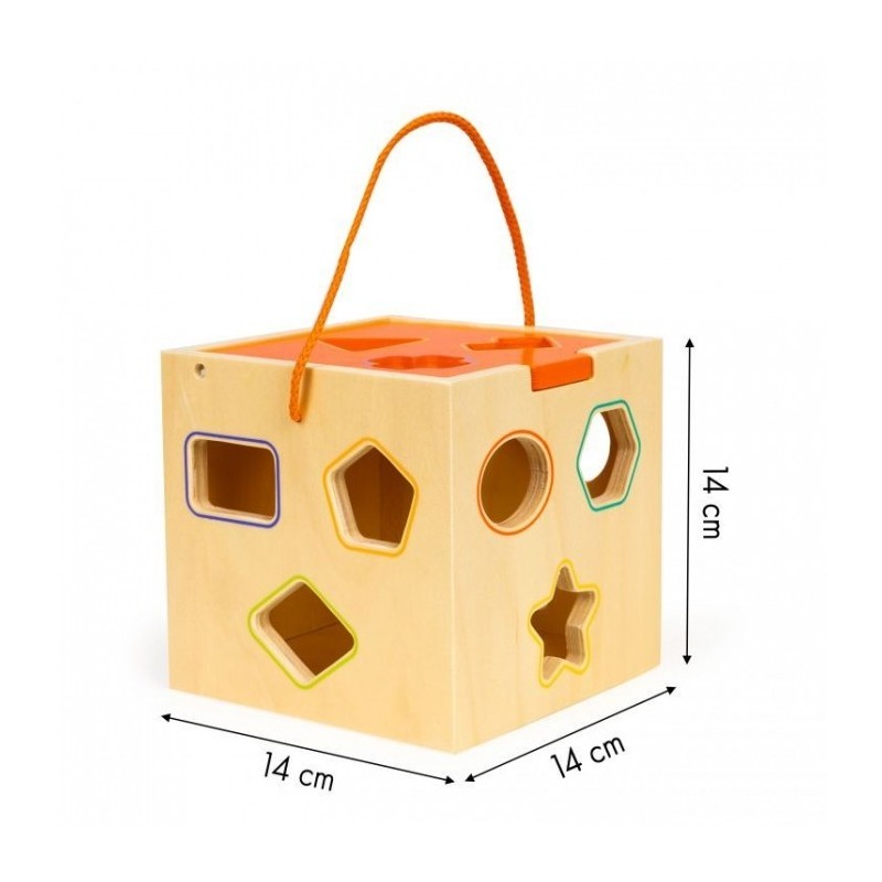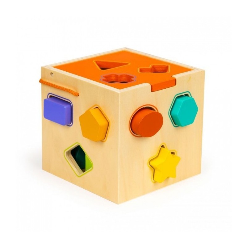 Fiecare parte a cubului are gauri separate, profilate, in care se potrivesc blocurile specifice. Sarcina copilului este de a potrivi blocurile adecvate cu gaurile. Datorita acestui fapt, copilul va dezvolta abilitatile manuale, va invata diverse forme si culori. Jucaria stimuleaza dezvoltarea copilului in domeniul recunoasterii formelor, culorilor, abilitatilor manuale si coordonarii ochi-mana.