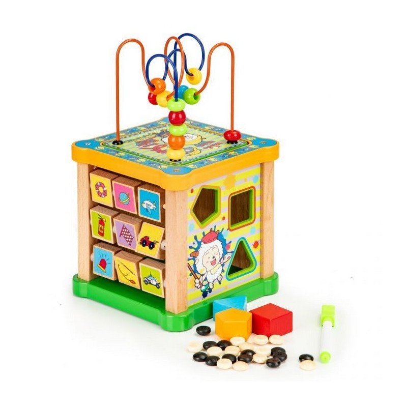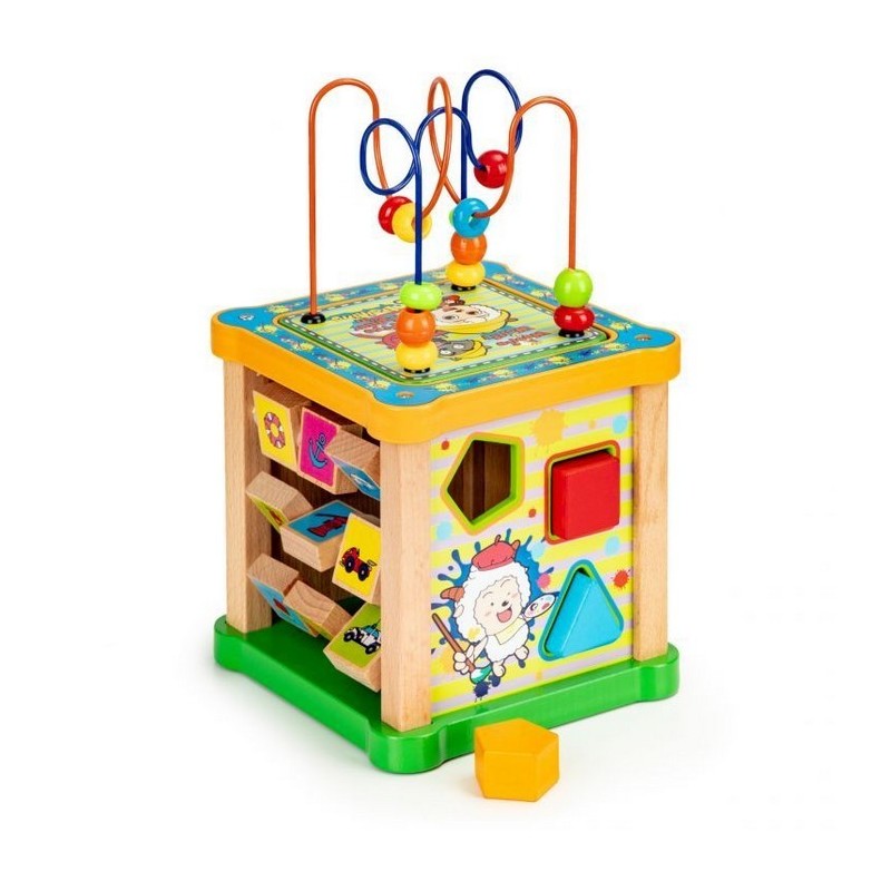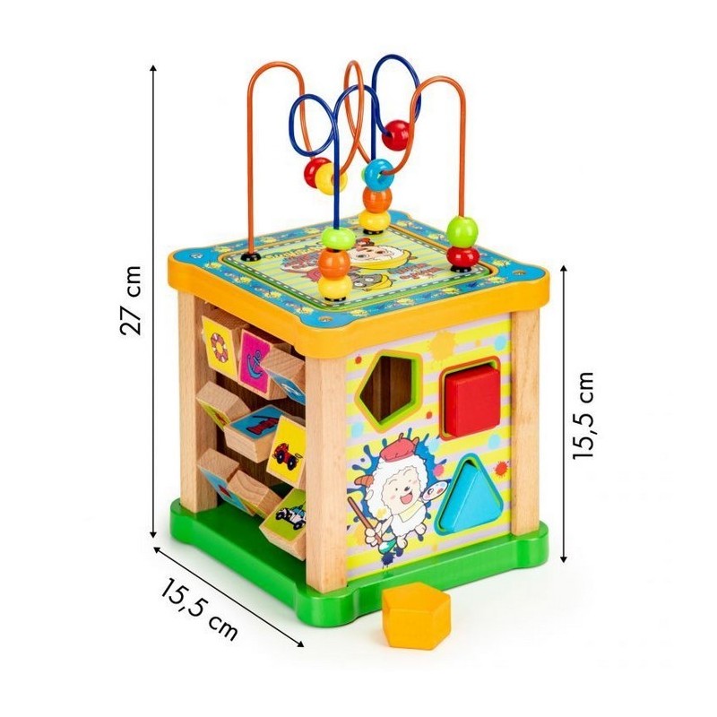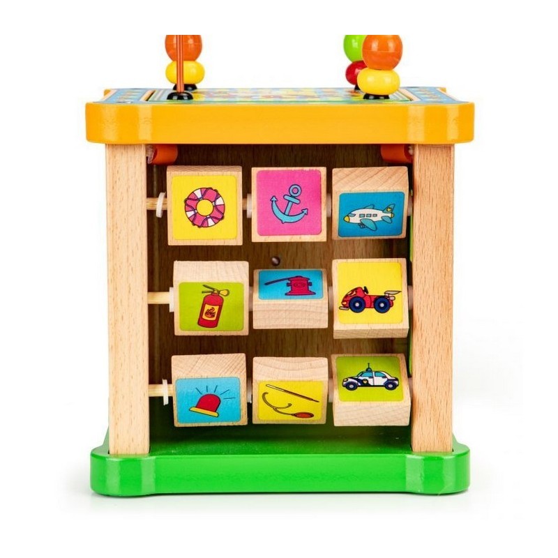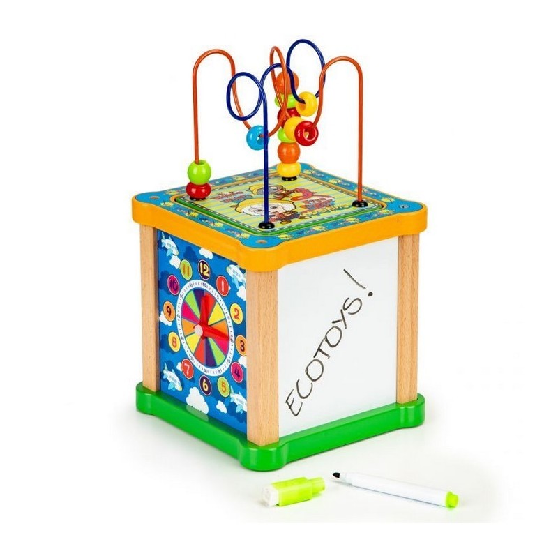 Cubul educational Ecotoys ii va permite copilului sa se dezvolte pe mai multe niveluri, totul datorita designului sau. In fiecare perete exista o functionalitate si un caracter complet diferit. Jucaria este conceputa pentru copiii cu varsta de peste 3 ani.