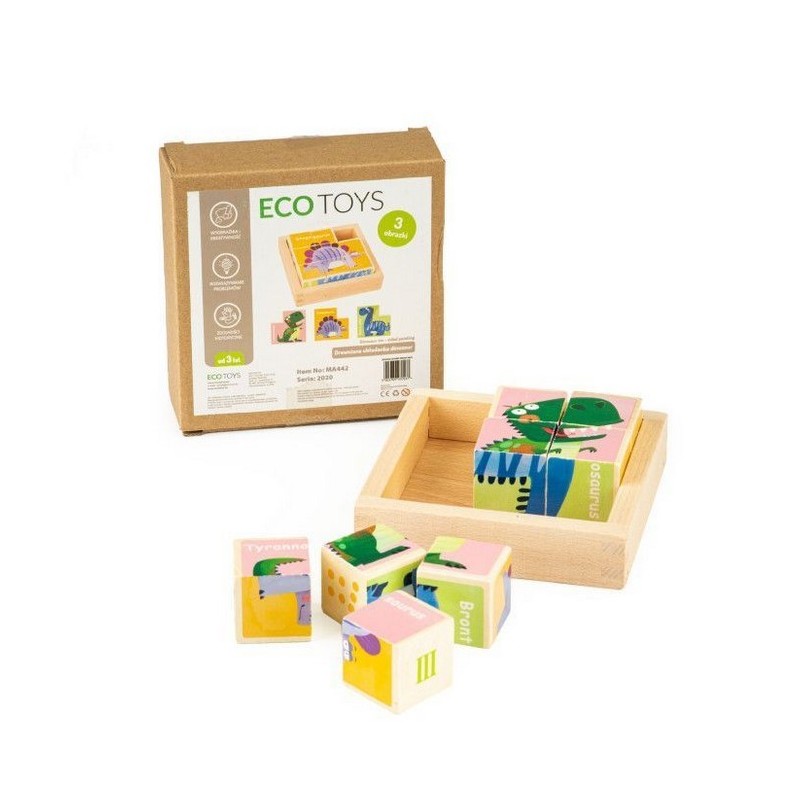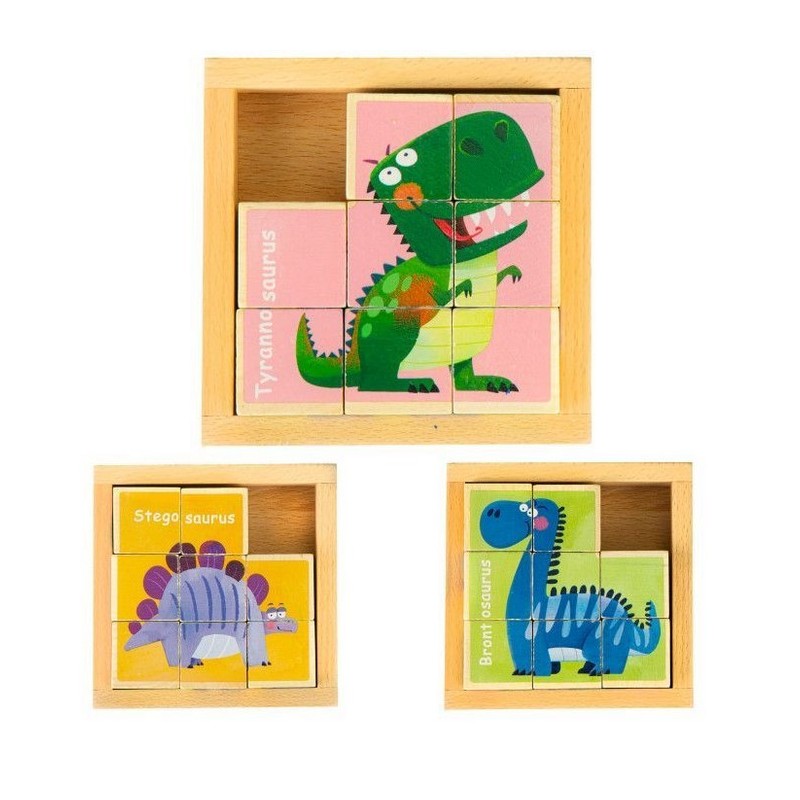 Blocurile va permit sa aranjati 3 imagini colorate cu grafica dinozaurilor. Pozele se remarca in ceea ce priveste culoarea, ceea ce atrage atentia copiilor.