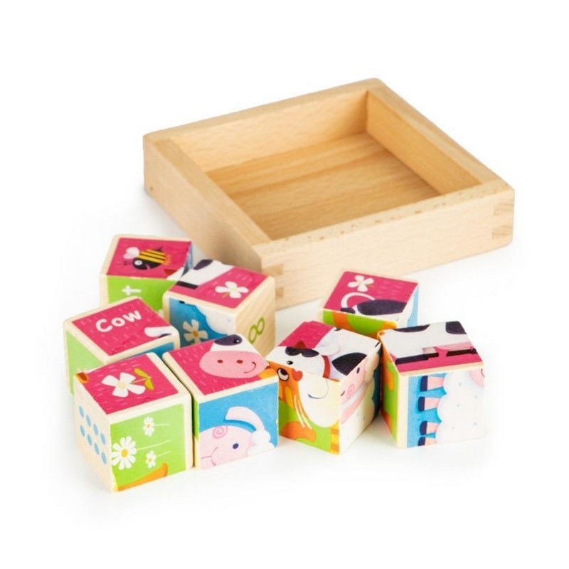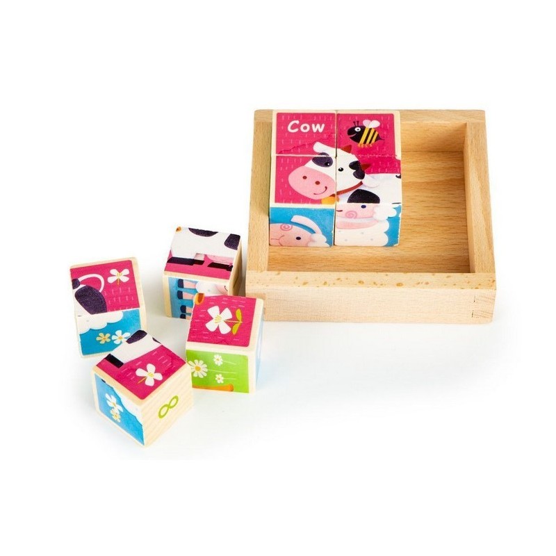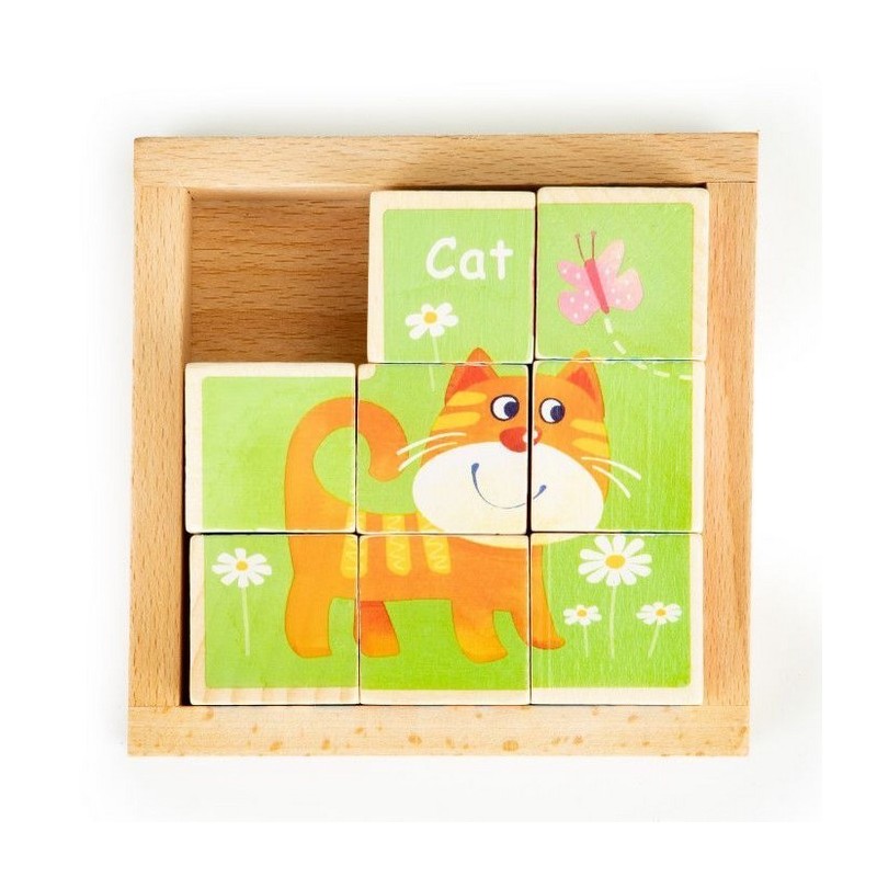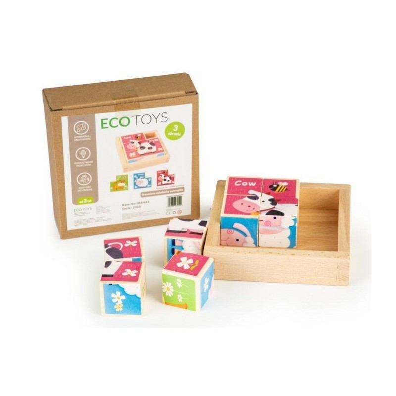 Blocurile va permit sa aranjati 3 imagini colorate care prezinta animale – ovine, vaca, pisica. . Pozele se remarca in ceea ce priveste culoarea, ceea ce atrage atentia copiilor.