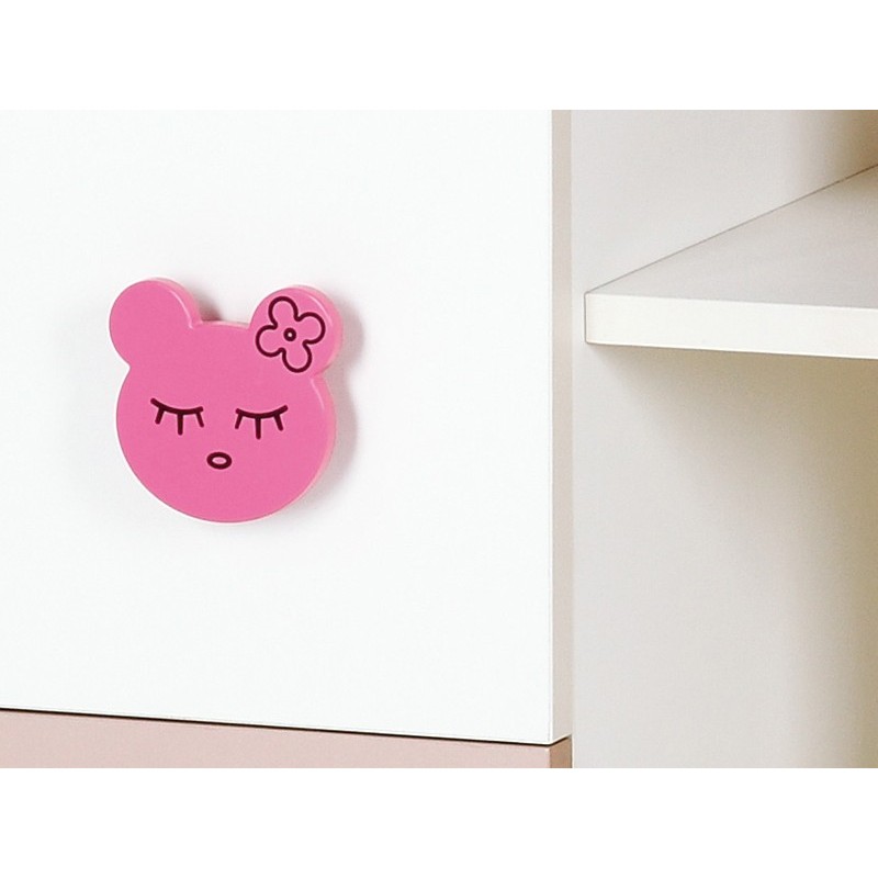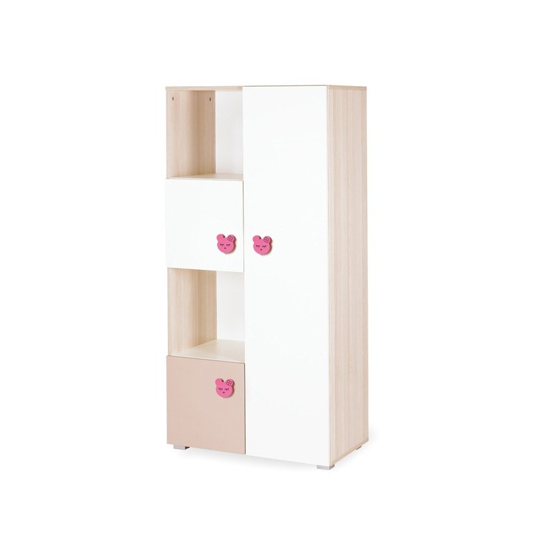 Acest dulap cu 3 usi KLUPS are un spatiu de depozitare avantajos care va va permite depozitarea hainutelor copilului, scutecelor si altor accesorii necesare. Este un dulap confectionat din materiale de calitate, in nuante placute de roz si alb sau maro si alb. Dulapul este prevazut cu 3 usi practice, 2 rafturi deschise si manere vesele in forma de ursuleti.