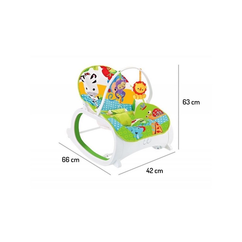 Un balansoar datorită căruia copilul dumneavoastră se poate odihni și se poate juca în siguranță în primele săptămâni din viața sa. Balansoarul este echipat cu o saltea moale, plăcută la atingere.