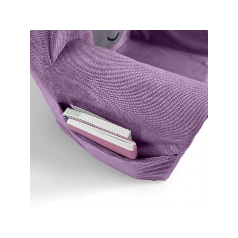 Fotoliul are maner, pentru a fi usor de transportat, si un buzunar pentru depozitat jucarii.