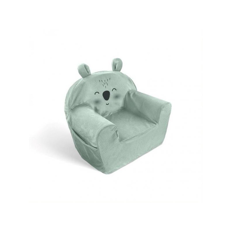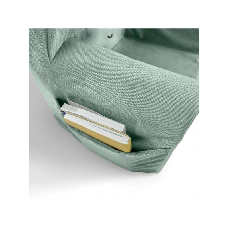 Fotoliul are maner, pentru a fi usor de transportat, si un buzunar pentru depozitat jucarii.