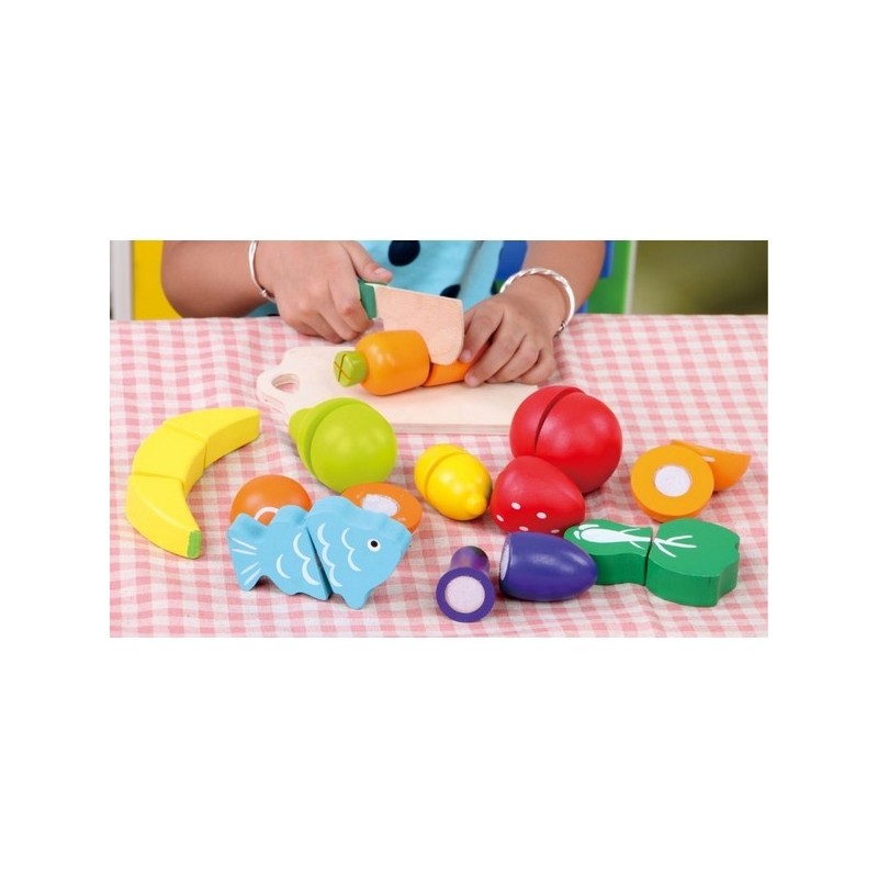 Setul este ideal pentru copiii mici, vor invata sa recunoasca fructele si legumele, caracteristicile lor, isi vor dezvolta imaginatia si abilitatile practice.