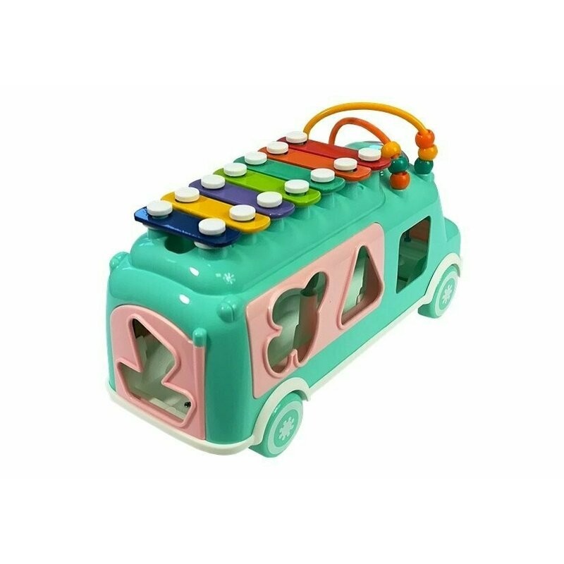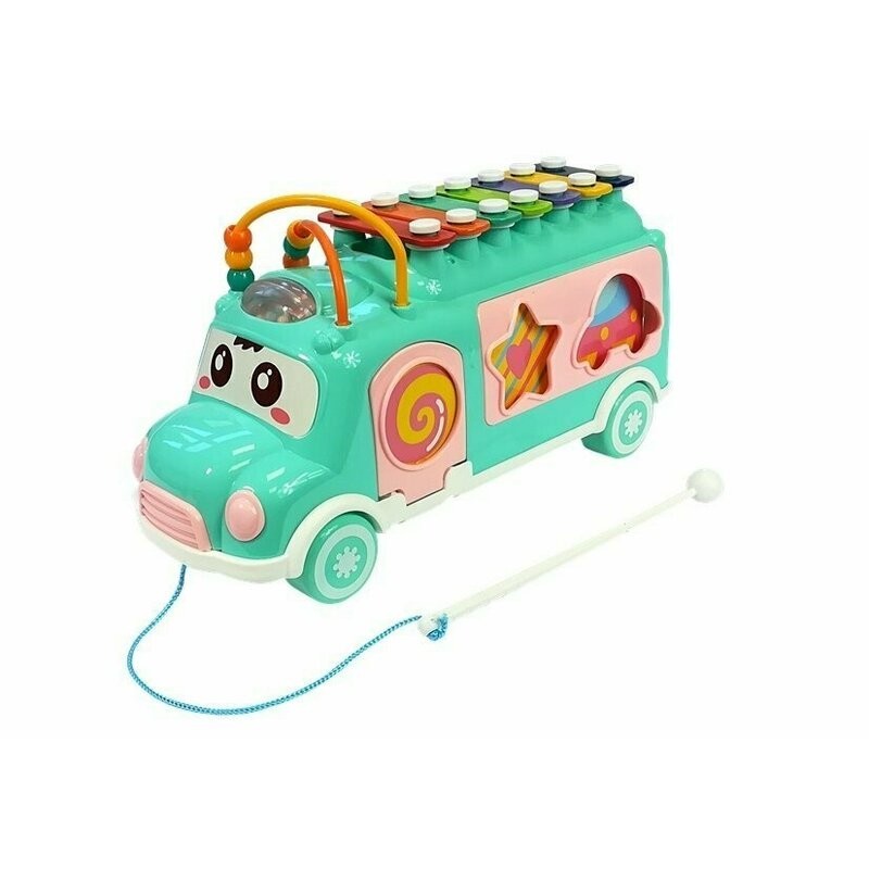 Autobuzul vesel are gauri pe partile laterale pentru a se juca in forme potrivite, in timp ce pe acoperisul sau puteti gasi margele pe fire si un xilofon in culori vesele!