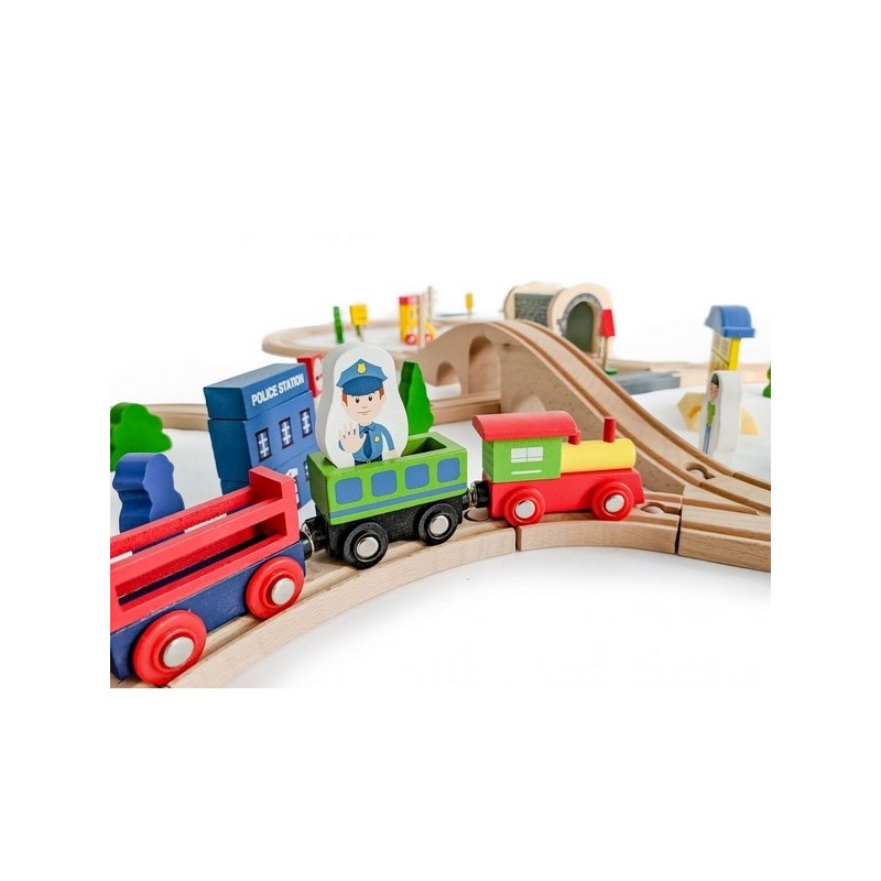 Setul este format din 69 de elemente interesante, de exemplu, vehicul, indicatoare rutiere si cladiri, banca, copaci, omuleti.