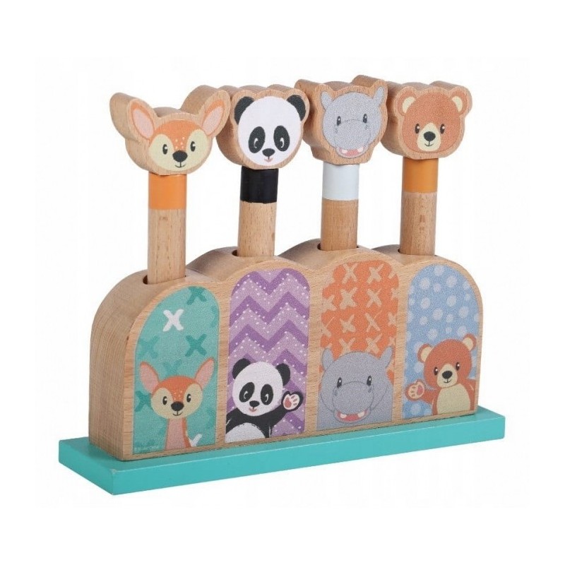 Realizate estetic si natural, jucariile colorate din lemn stimuleaza imaginatia si creativitatea datorita simplitatii lor.