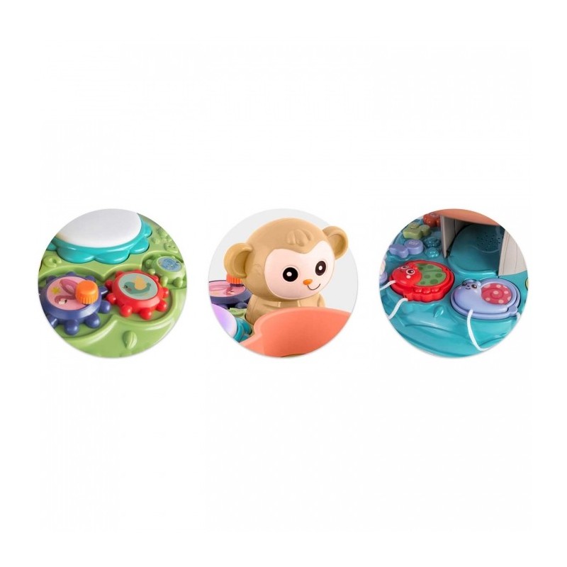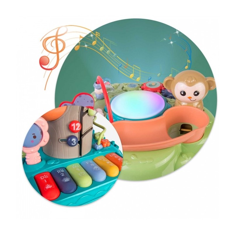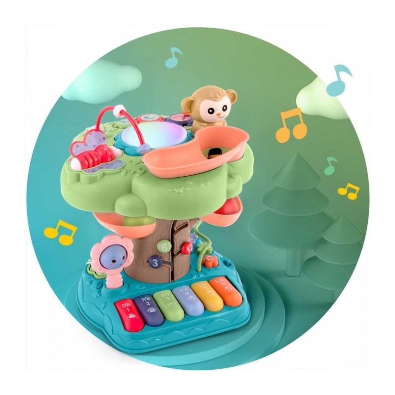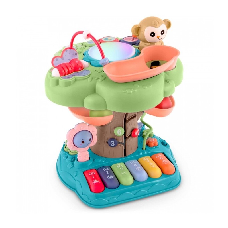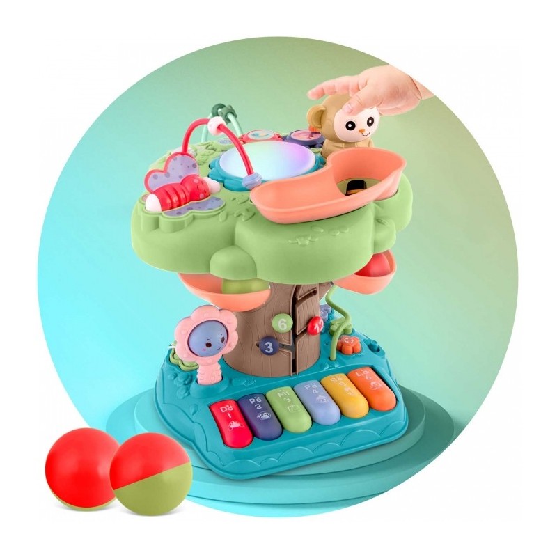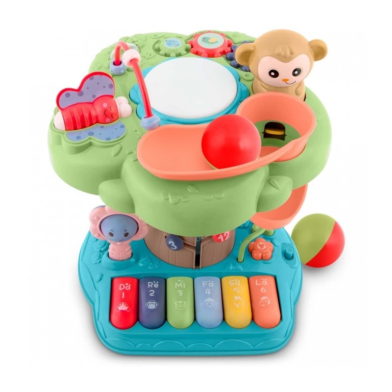 Contine: pista pentru mingi (2 bile/set), pian cu melodii placute si multe alte activitati interesante.