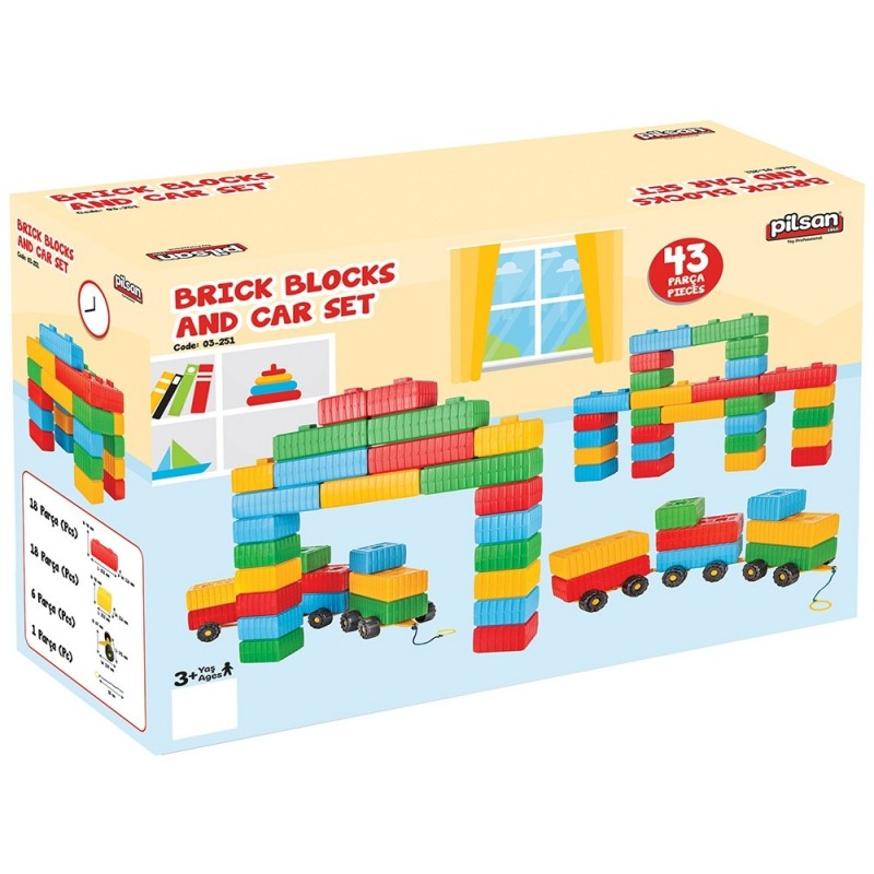 Detalii Jucarie Pilsan Cuburi de construit Brick Blocks and Car Set 43 piese