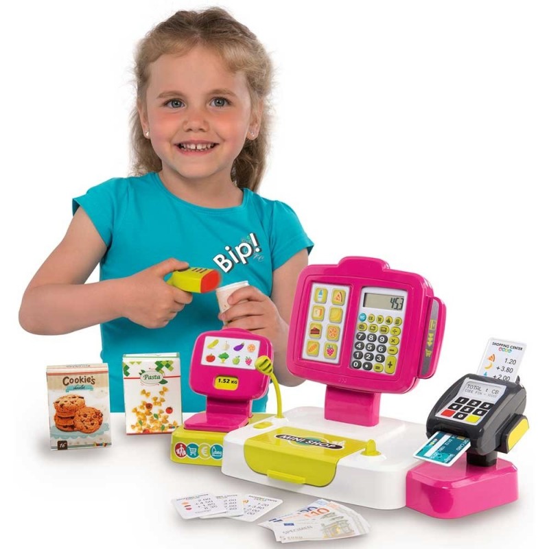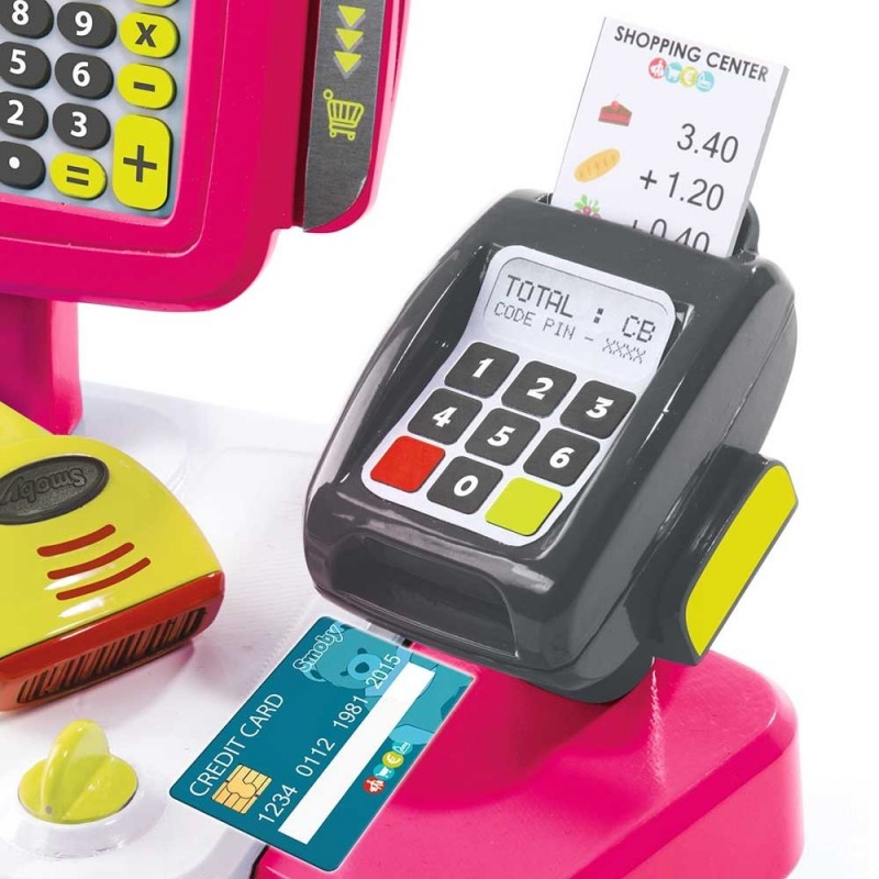 - Casa de marcat pentru copii Smoby cu accesorii este o jucarie electronica cu 27 de accesorii recomandata copiilor incepand cu varsta de 3 ani