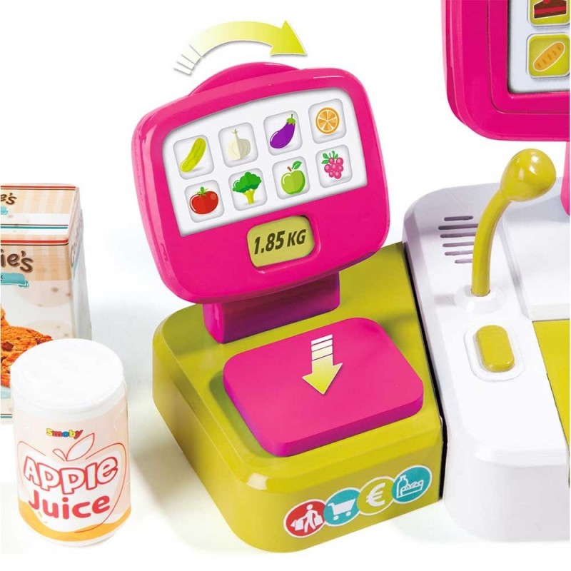 - Produs fabricat in Franta sub brandul Smoby, casa de marcat a fost realizata la cele mai inalte standarde de siguranta, astfel marginile jucariilor sunt rotunjite evitand ranirea copiilor in timpul jocului