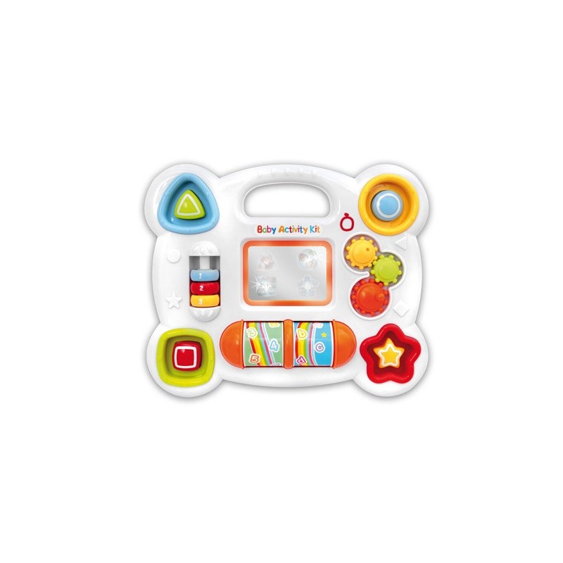 - Dotat cu lumini, sunete si melodii plus elemente mecanice cu care copilul la invata sa faca diferenta intre un cerc si un patrat.