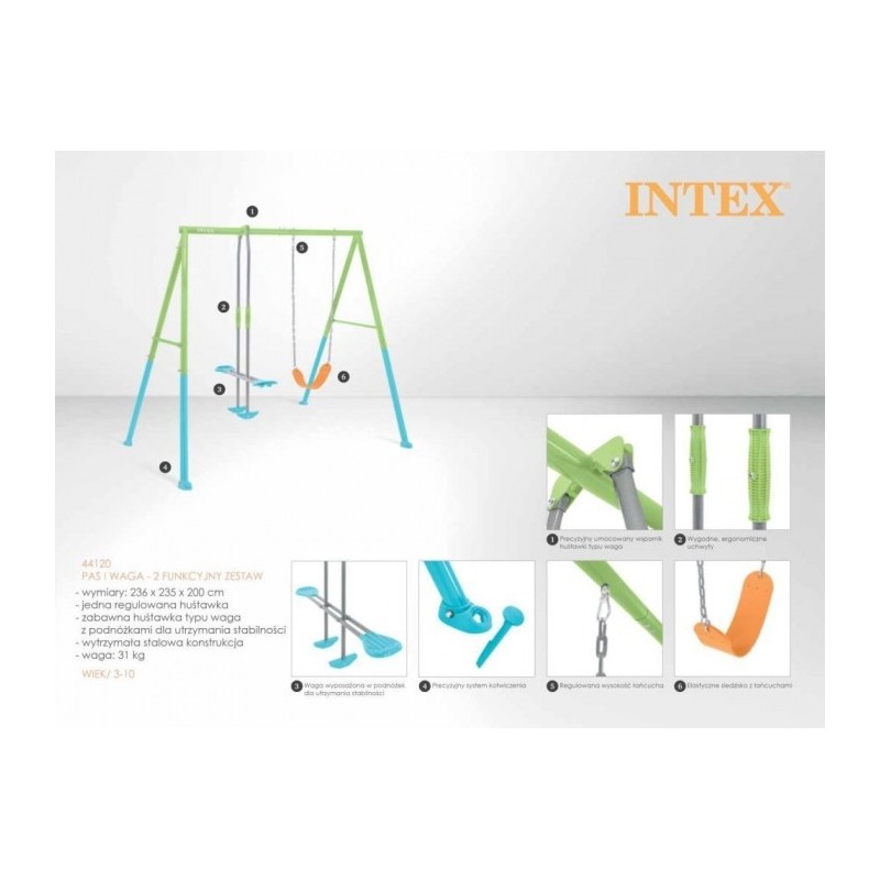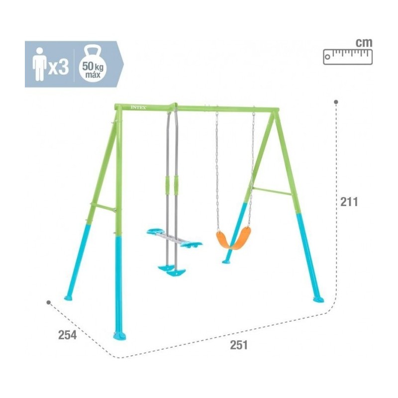 Cadrul poate fi ancorat la sol, ceea ce imbunatateste stabilitatea setului chiar si in timpul jocului intens. Greutatea maxima a utilizatorului este de 50 kg.