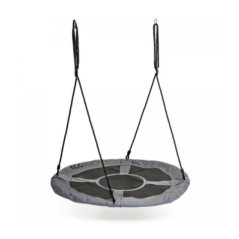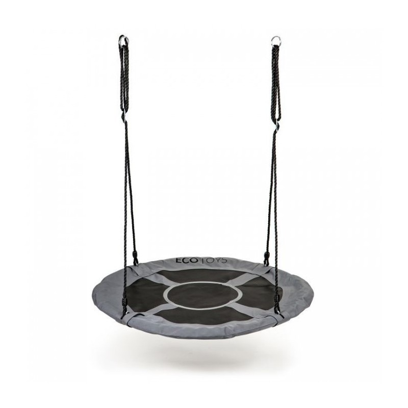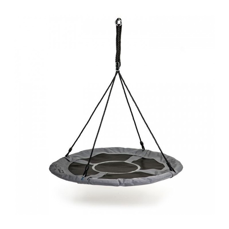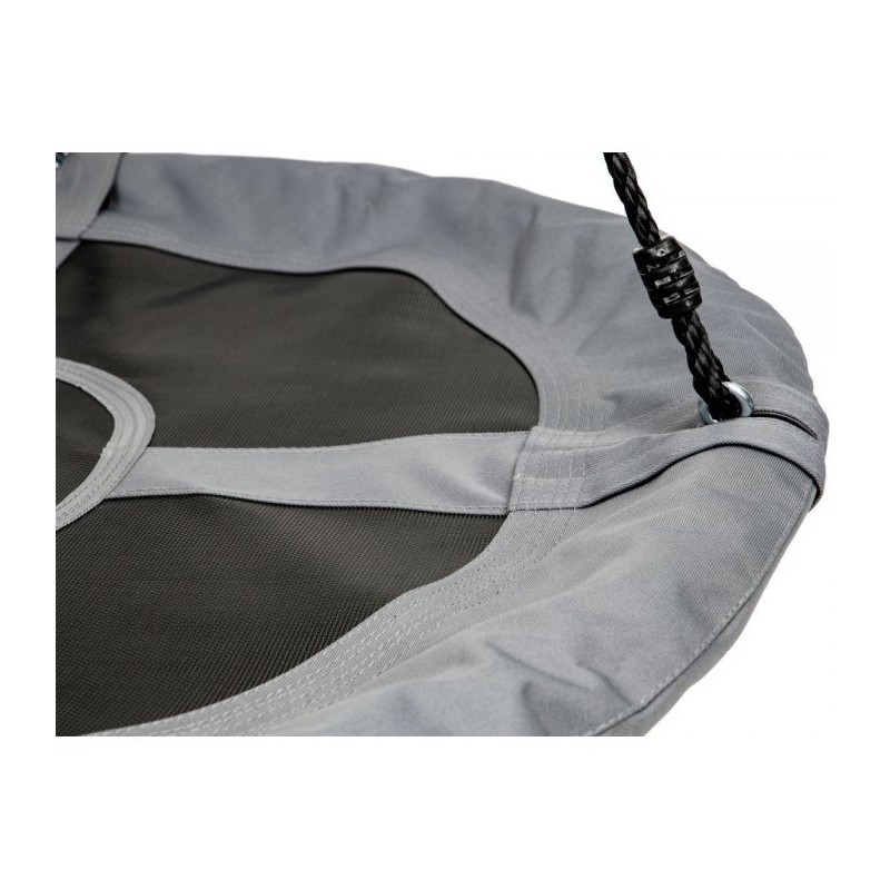 Scaunul cu diametrul de 110 cm este foarte confortabil, din poliester durabil. Balansoarul este montat cu o coarda groasa de 10 mm, care are o reglare a inaltimii intre 140 si 190 cm. Constructia leaganului este lipsita de orice element ascutit proeminent. Intregul ansamblu este rezistent la conditiile meteorologice de afara.