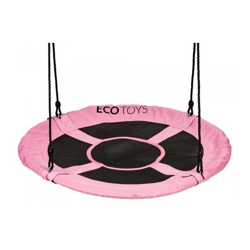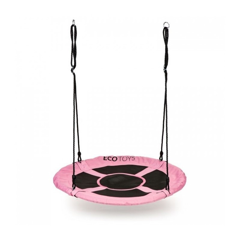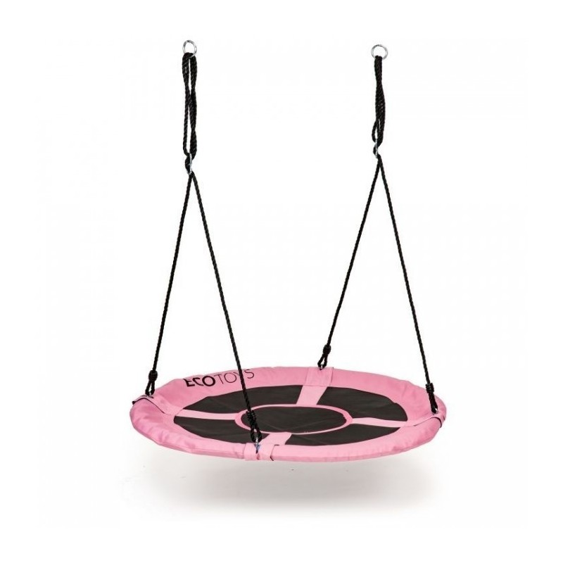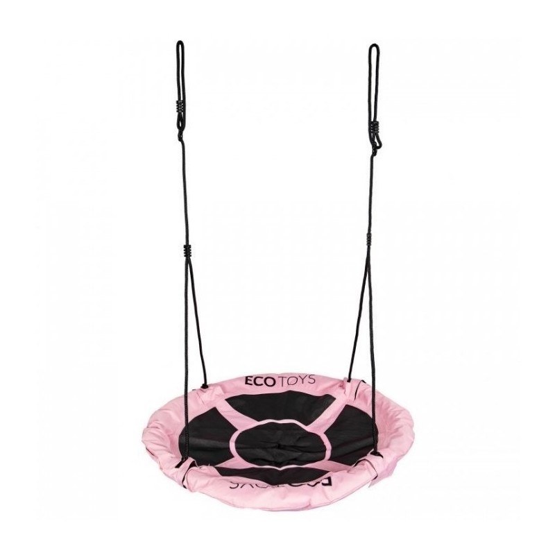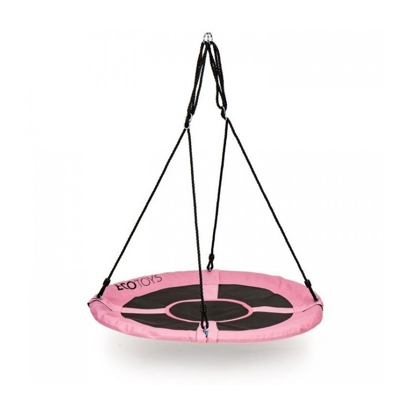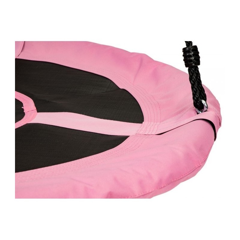 Scaunul cu diametrul de 110 cm este foarte confortabil, din poliester durabil. Balansoarul este montat cu o coarda groasa de 10 mm, care are o reglare a inaltimii intre 140 si 190 cm. Constructia leaganului este lipsita de orice element ascutit proeminent. Intregul ansamblu este rezistent la conditiile meteorologice de afara.