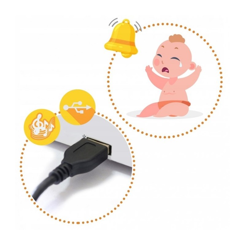 - Port USB: conectati-va muzica prin intermediul USB-ului. Datorita acestei functii, puteti conecta melodiile preferate ale copilului dvs.