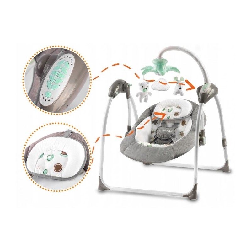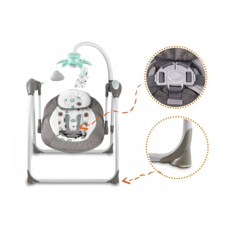 - Controlati balansoarul din aplicatie: puteti controla eficient balansoarul din aplicatia mobila! Dupa instalarea aplicatiei SWING CONTROL disponibila gratuit pe telefon, aceasta se va conecta automat la balansoarul activ. De la distanta schimbati melodiile, reglati volumul, porniti controlul plansului sau setati intensitatea balansoarului!