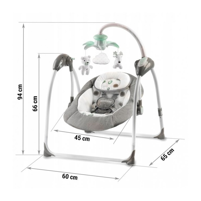 Dimensiuni leagan: 60 x 65 x 66 cm (L x l x H) + 28 cm (H -cand este caruselul atasat);