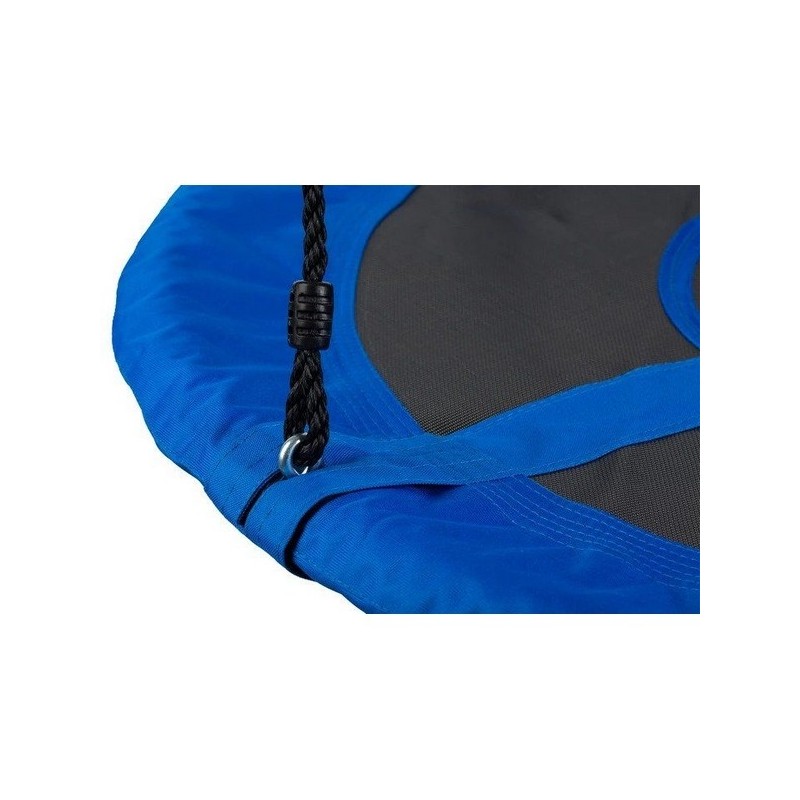 Leaganul dispune de 2 franghii reglabile cu o grosime de 10mm, din material rezistent si de o platforma pentru sezut cu diametrul de 100cm, cu o tapiterie din spuma, pentru confort si siguranta.