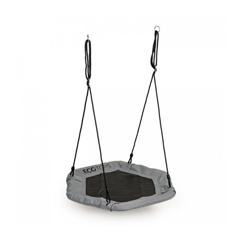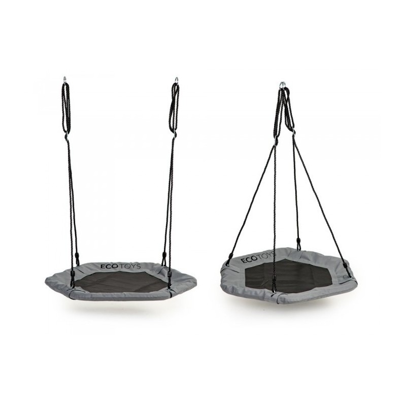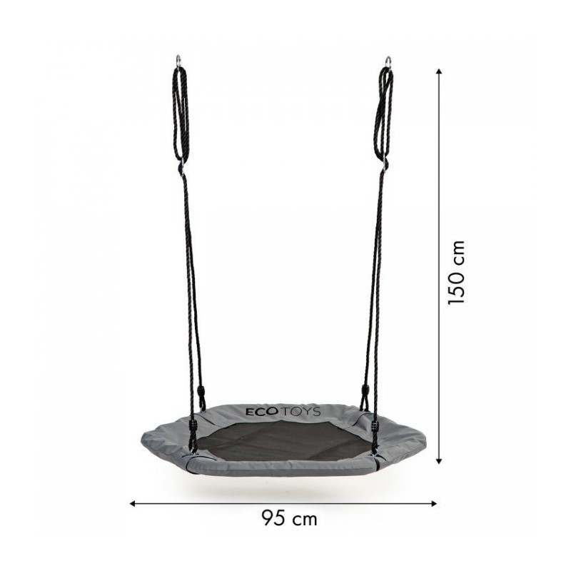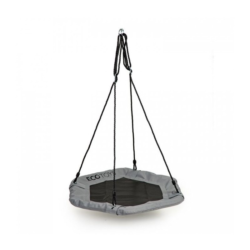 Leaganul este atasat cu franghii groase de 10 mm intr-un singur punct sau doua. Lungimea corzilor este reglabila, astfel incat sa ii puteti regla cu usurinta inaltimea. Sarcina maxima este de 100 kg. Materialul folosit pentru realizarea leaganului asigura rezistenta sa la conditiile meteorologice.