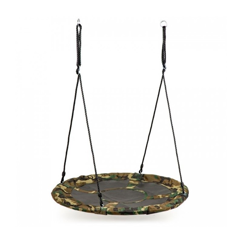 Leaganul este atasat cu franghii groase de 10 mm intr-un singur punct sau doua. Lungimea corzilor este reglabila, astfel incat sa ii puteti regla cu usurinta inaltimea. Sarcina maxima este de 100 kg. Materialul folosit pentru realizarea leaganului asigura rezistenta sa la conditiile meteorologice.
