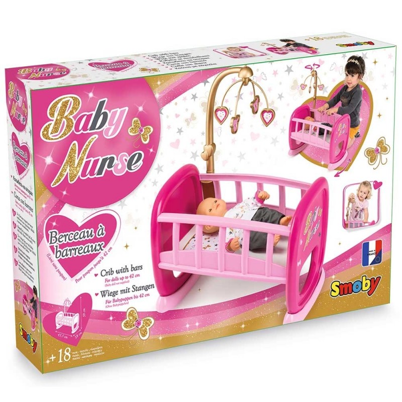 • Leaganul pentru papusa Smoby Baby Nurse cu carusel de la producatorul frantuzesc Smoby este o jucarie de calitate, leagan si patut in acelasi timp fiind potrivit pentru o papusa cu o marime maxima de 42 cm