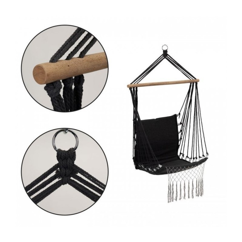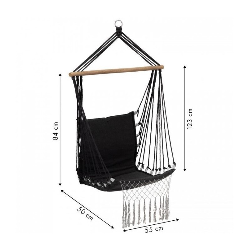 Husa durabila este fabricata din bumbac, care este placuta la atingere si asigura o permeabilitate maxima la aer. Scaunul este finisat cu franjuri decorativi, care ii confera un caracter unic si fac leaganul sa arate grozav atat in gradina, cat si in casa.