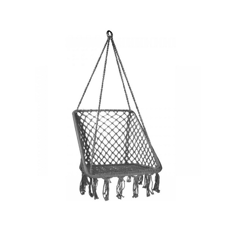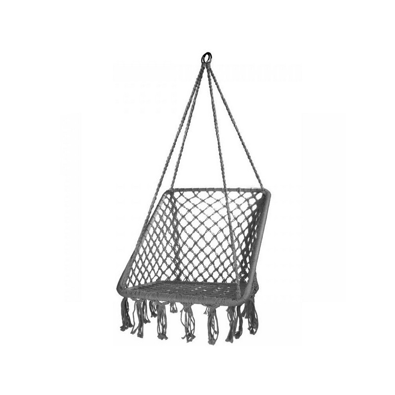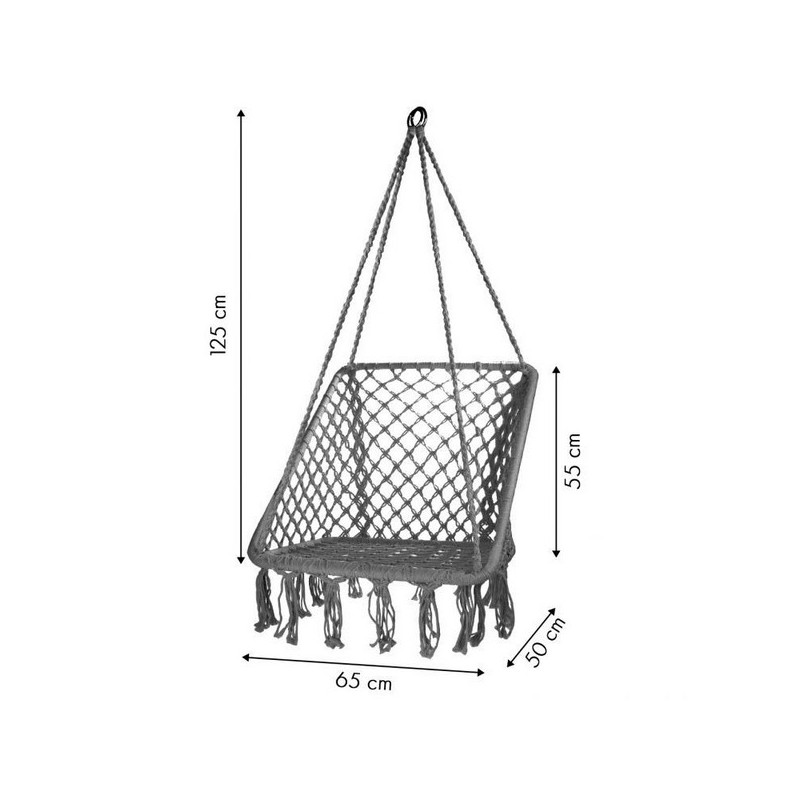 Fotoliul leaganului este suspendat de o franghie invelita in bumbac, 125cm, care poate fi prinsa de suport in unul dau doua puncte.