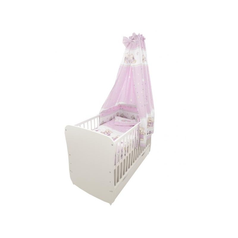 Dupa alegerea patutului s a saltelei potrivite, e randul lenjeriei pentru patut, o piesa la fel de importanta pentru confortul si siguranta celor mici. Aceasta lenjerie este perfecta pentru copilasul dumneavoastra, fiind confectionata din bumbac de foarte buna calitate, pentru a evita ca cei mici sa transpire. Culorile sunt frumoase, desenele imprimate sunt foarte atractive si vor da o nota aparte camerei copilului. Cearsaful este prevazut cu elastic pentru a ramane fixat pe saltea, fapt extrem de important pentru perioada cand cei mici incep sa se mute de pe o parte pe alta, sau sa se miste prin patut.