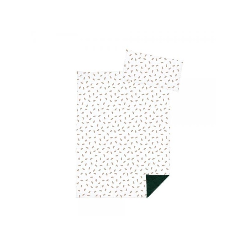 Este un produs pe doua fete: o fata este matlasata in catifea ecru - extrem de moale si placuta la atingere, cealata parte are un model unic in stele multicolore acc
