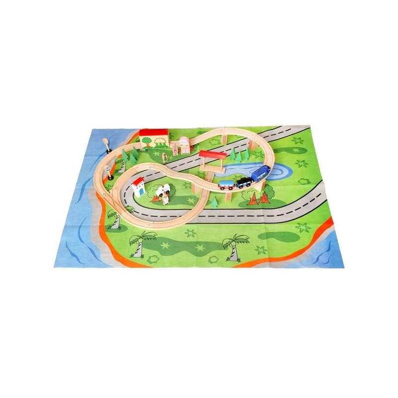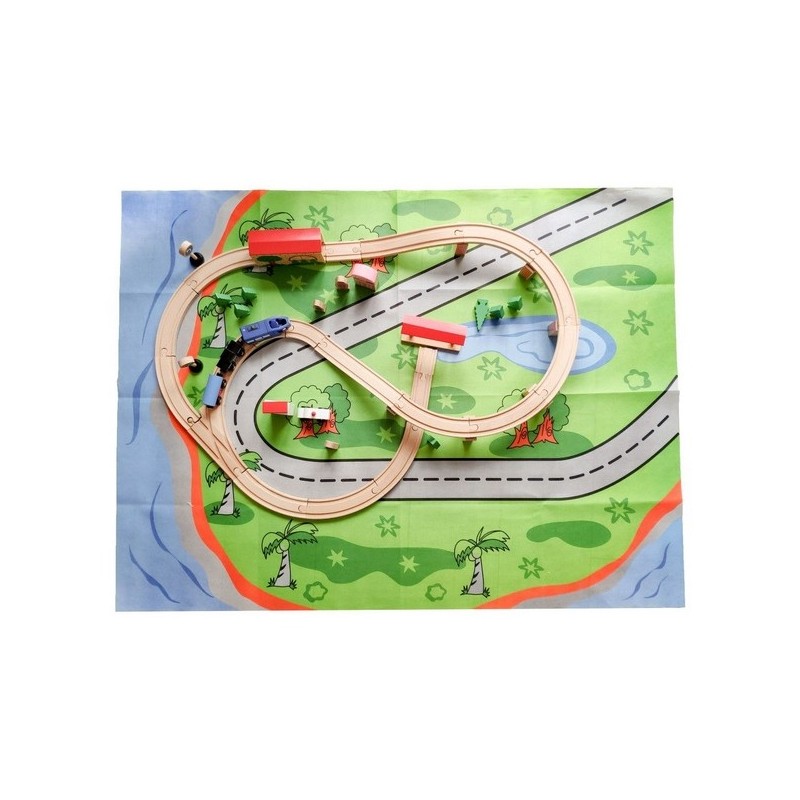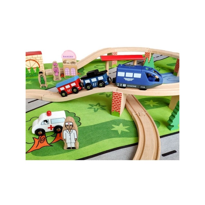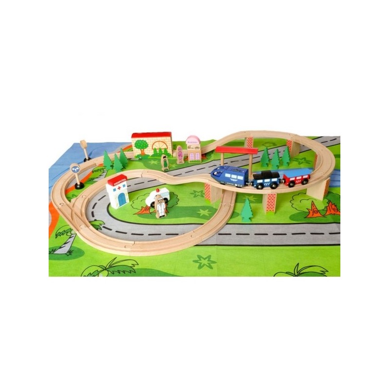 Setul este alcatuit dintr-o varietate de elemente interesante, inclusiv vehicule, semne rutiere, cladiri. Traseele sunt presarate cu atractii deosebite pentru copilul dvs., de pilda, traversarea viaductului, tunel, Crossover. Trenul se poate opri la brutarie, la gara, la spital precum si in alte locatii gata de descoperit de catre copil.