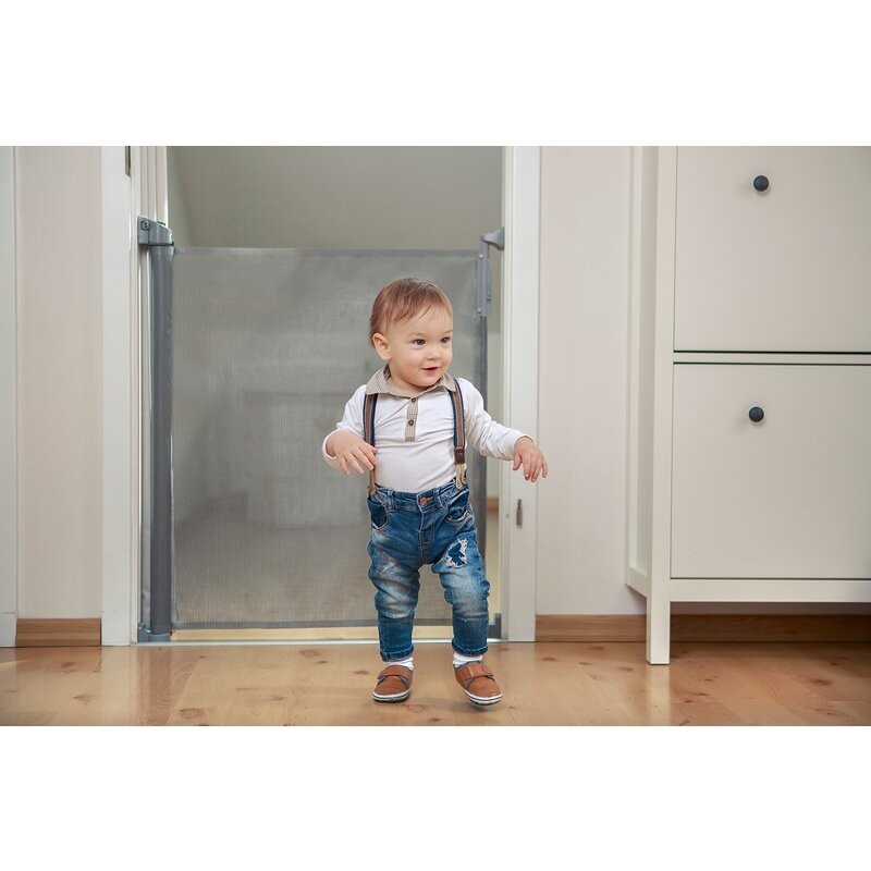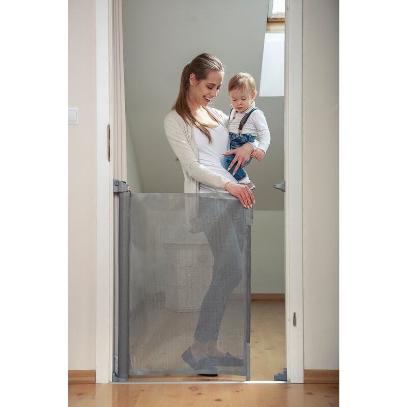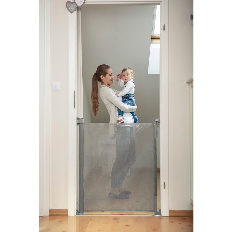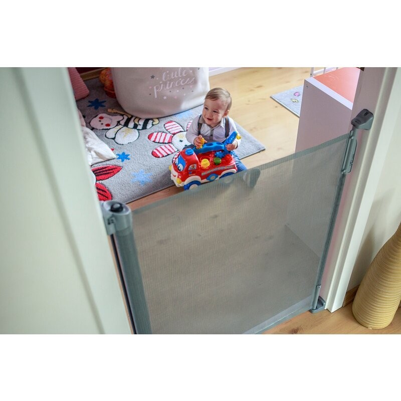 Bariera de siguranta Tulia este potrivita pentru montarea pe diferite tipuri de pereti. Setul de produse include 3 seturi de elemente de fixare pentru instalare in diferite locuri. Functia Clip On / Off permite comutarea fara probleme a balustradei dintre camere. Jaluzelele se intind pana la 140 de centimetri. Produsul este fabricat dintr-un material sintetic durabil, rezistent la razele UV si ploaie. Datorita acestui fapt, balustrada poate fi utilizata nu numai in interior, ci si in exterior.