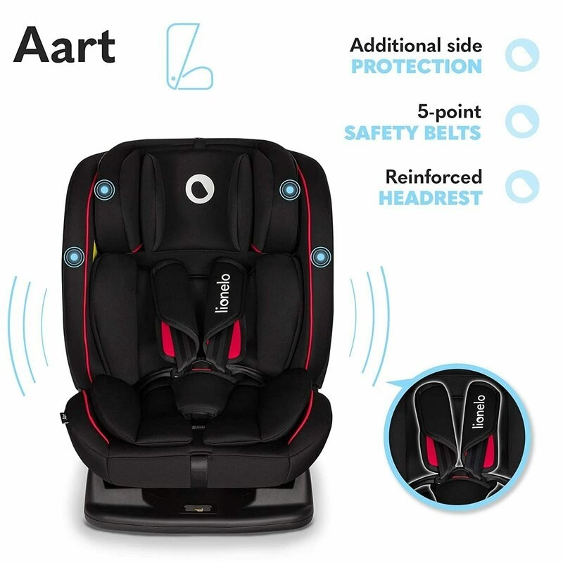 Lionelo Aart este scaunul de siguranta pentru copii, acesta ofera o gama larga de variante de reglare – perfect pentru multi ani de utilizare. Iti poti purta copilul cu spatele la sensul de mers pana la 18 kg si cu fata la sensul de mers pana la varsta de aproximativ 12 ani (pana la 36 kg). Are o structura flexibila, facandu-l pe un pasager mic sa se simta confortabil atat in timpul calatoriilor scurte pana la gradinita sau scoala, cat si in timpul calatoriilor lungi in vacanta. Datorita unui sistem universal de instalare bazat pe centuri, scaunul de siguranta pentru copii Aart este potrivit pentru orice masina.