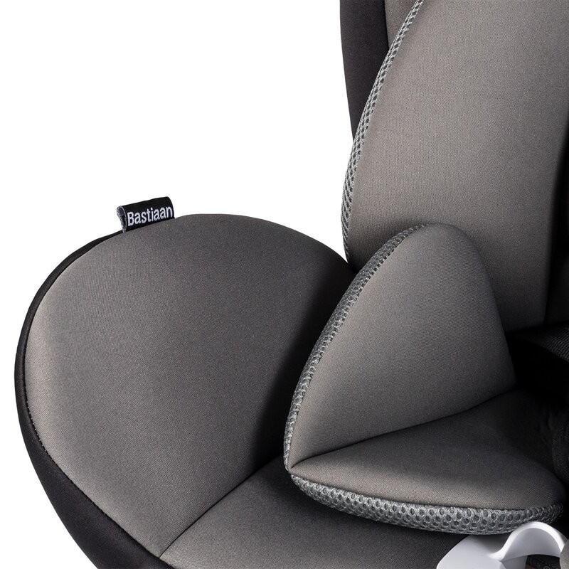 Deoarece scaunul de siguranta pentru copii Bastiaan poate fi montat in pozitie inversa, este potrivit si pentru bebelusi inca din primele zile de viata. Produsul are elemente laterale ranforsate si zona reglabila pentru tetiera. Datorita reglajului inclinarii spatarului pe 4 nivele , pozitia produsului poate fi usor adaptata nevoilor copilului. Siguranta este asigurata si de centurile de siguranta in 5 puncte cu.