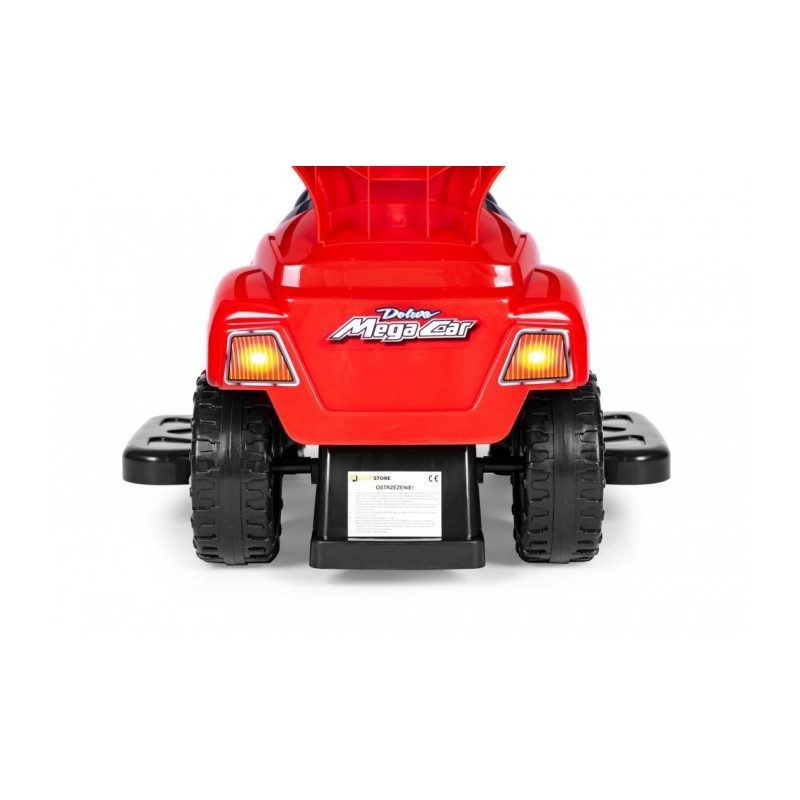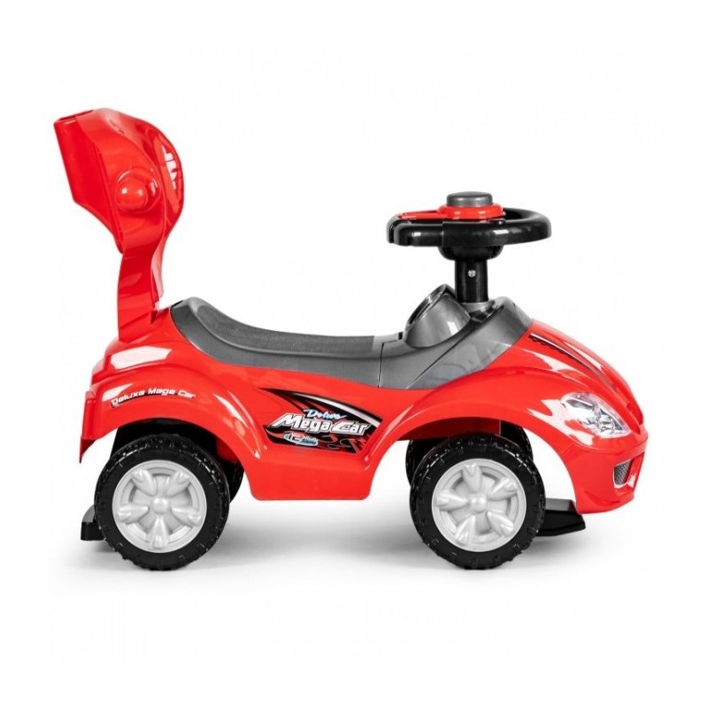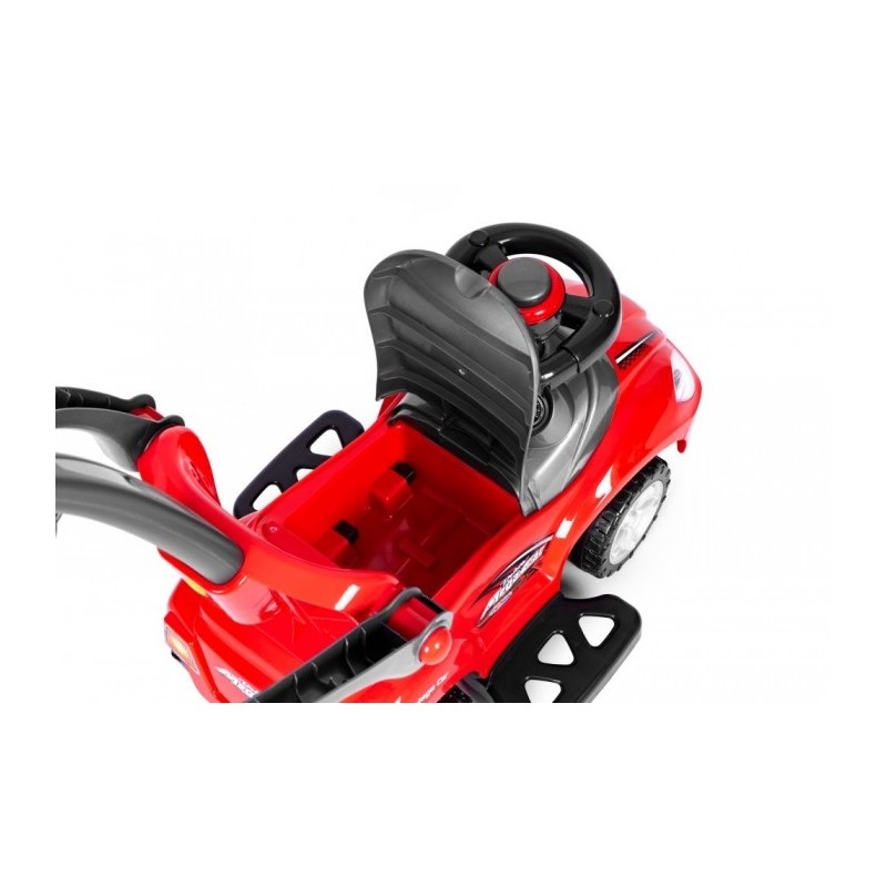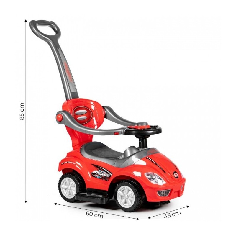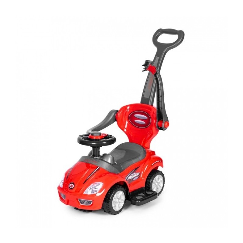 Masinuta de impins este realizata dintr-un material rezistent la orice impact. Masina poate fi modificata la alegere, astfel incat sa poata fi ajustata la varsta copilului. Barierele de protectie, suportul pentru picioare, spatarul si manerul pot fi detasate de masinuta atunci cand copilul este pregatit pentru asta. Rotile pivotante din fata sunt controlate de catre copil cu ajutorul volanului, care are incorporat si sunet de claxon. Sub scaun exista o ascunzatoare mare.