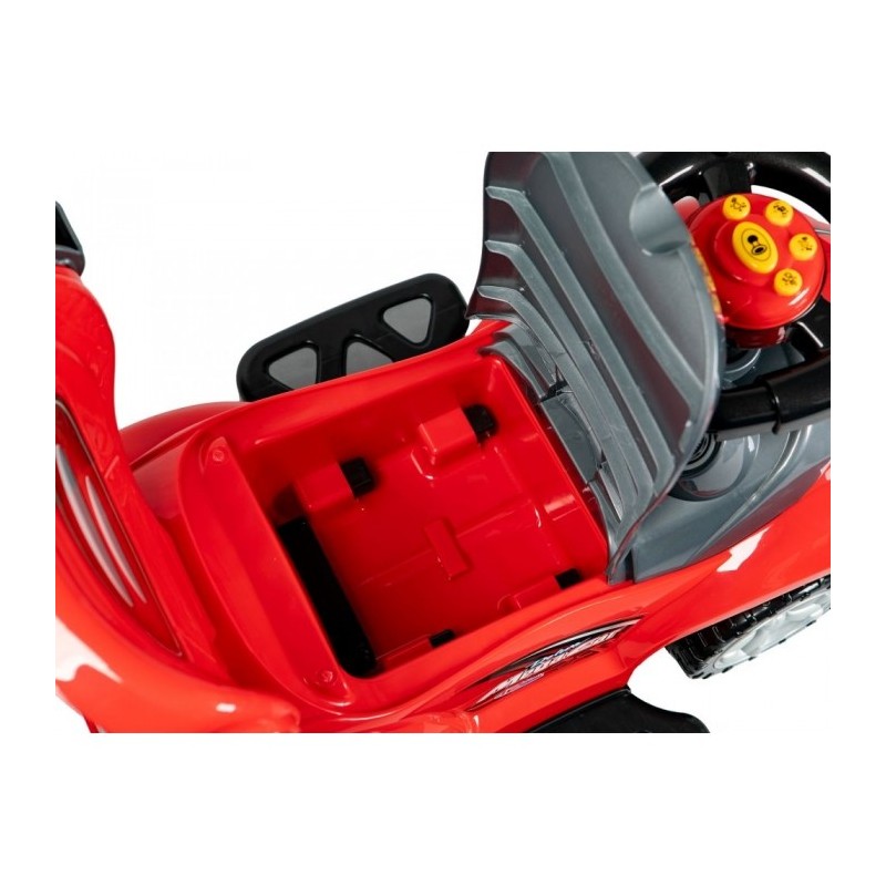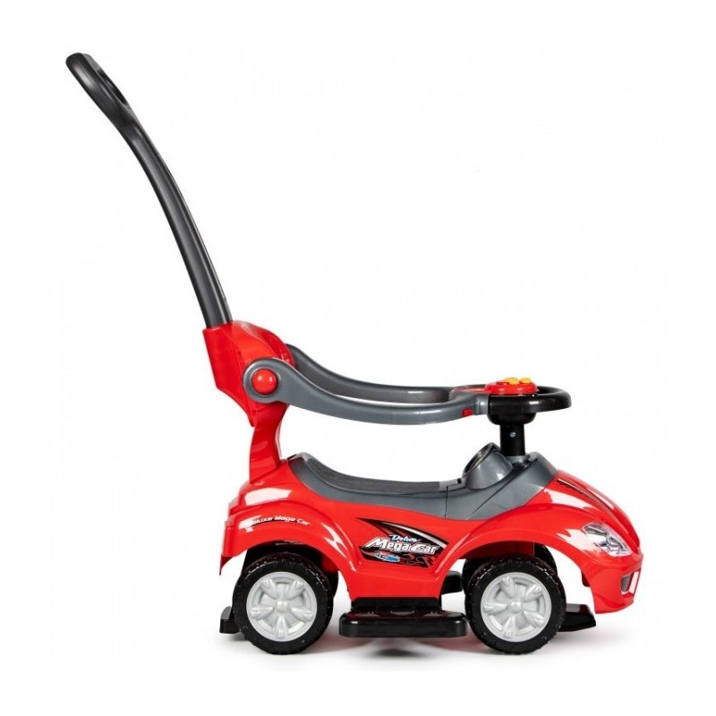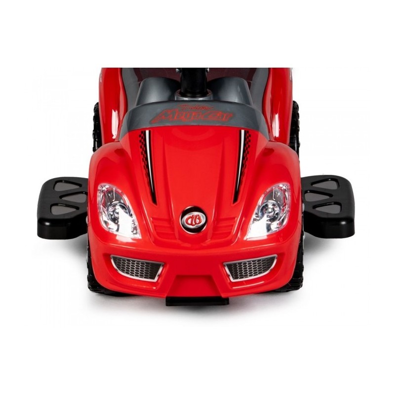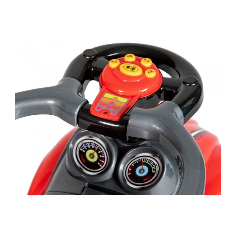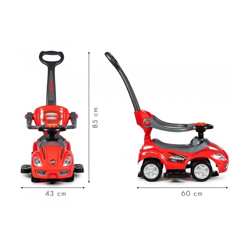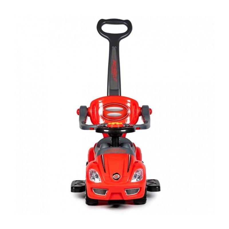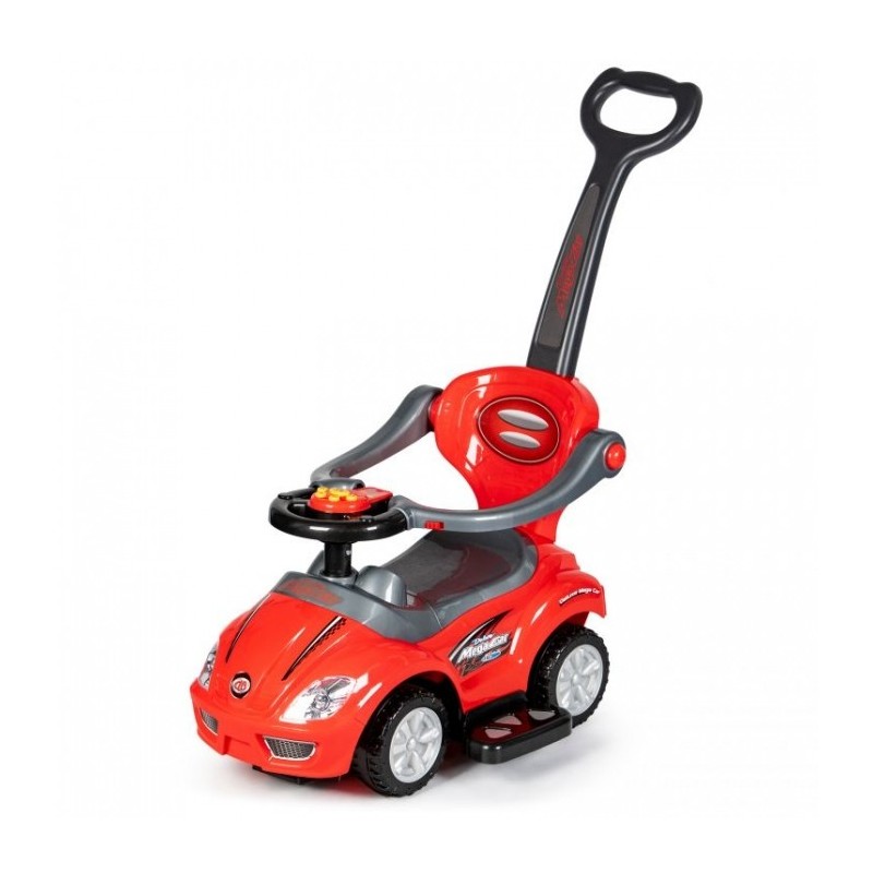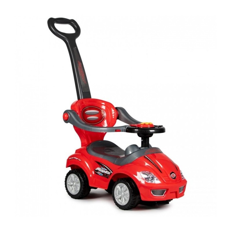 Masinuta de impins este realizata dintr-un material rezistent la orice impact. Masina poate fi modificata la alegere, astfel incat sa poata fi ajustata la varsta copilului. Barierele de protectie, suportul pentru picioare, spatarul si manerul pot fi detasate de masinuta atunci cand copilul este pregatit pentru asta. Rotile pivotante din fata sunt controlate de catre copil cu ajutorul volanului, care are incorporat si sunet de claxon. Sub scaun exista o ascunzatoare mare.