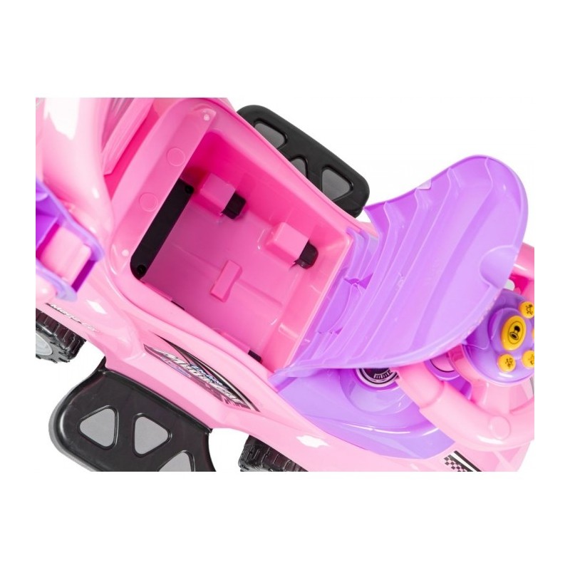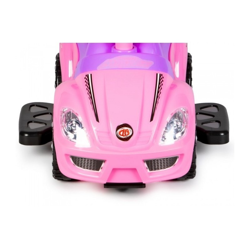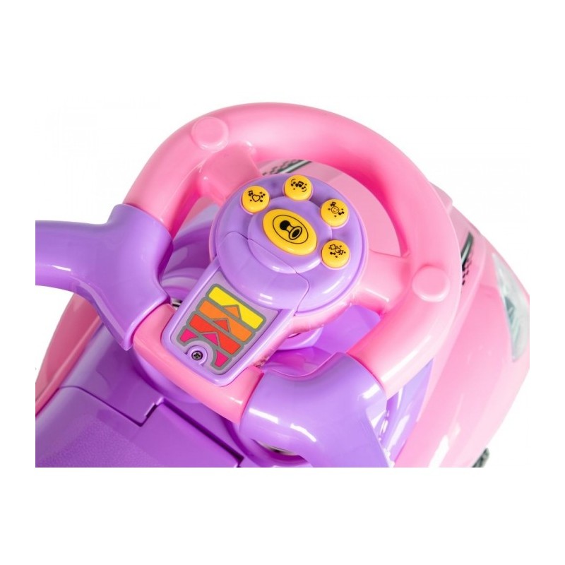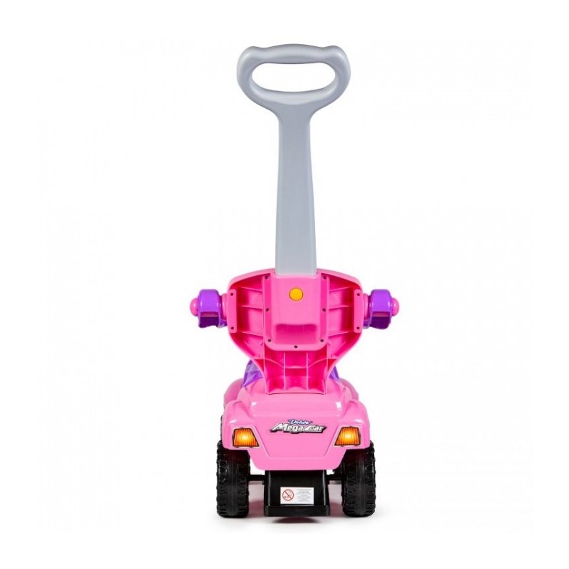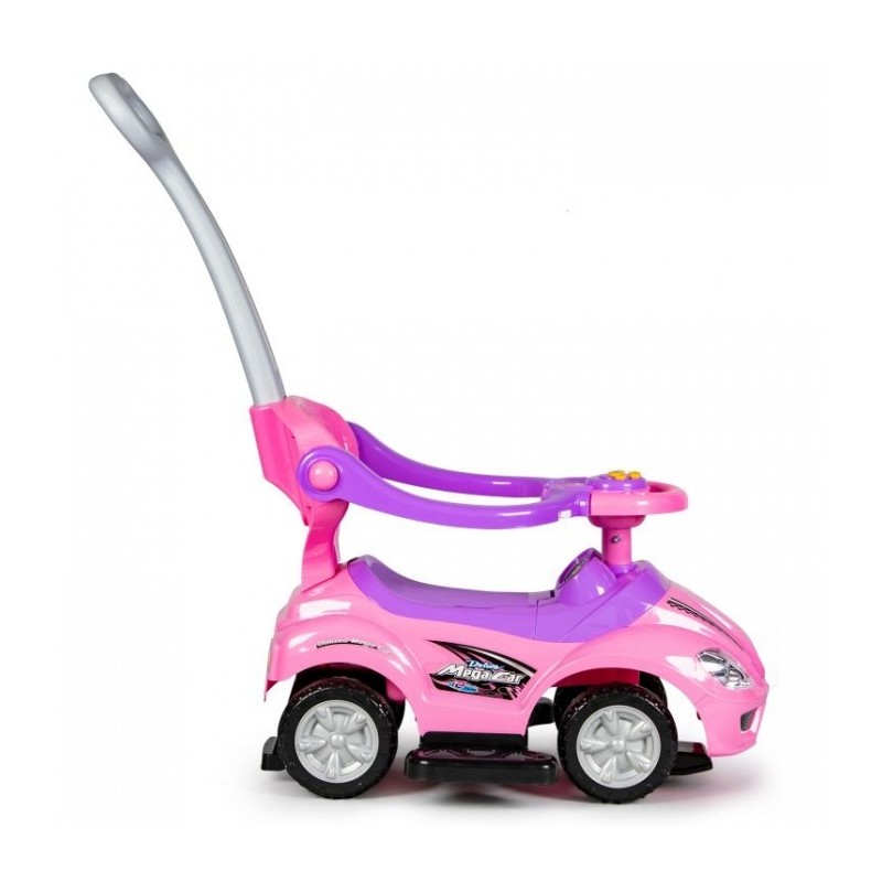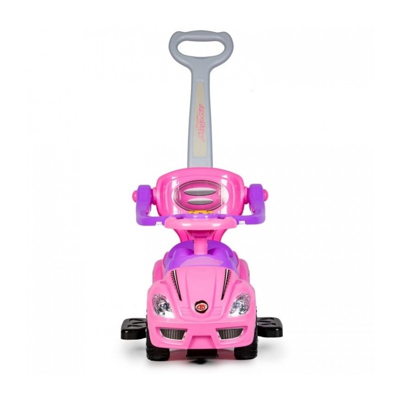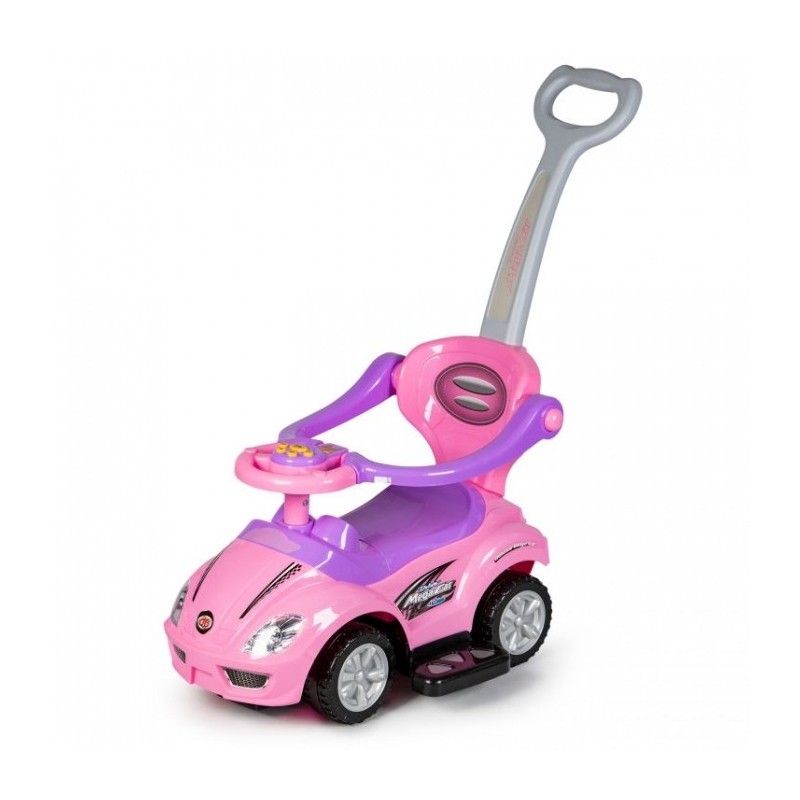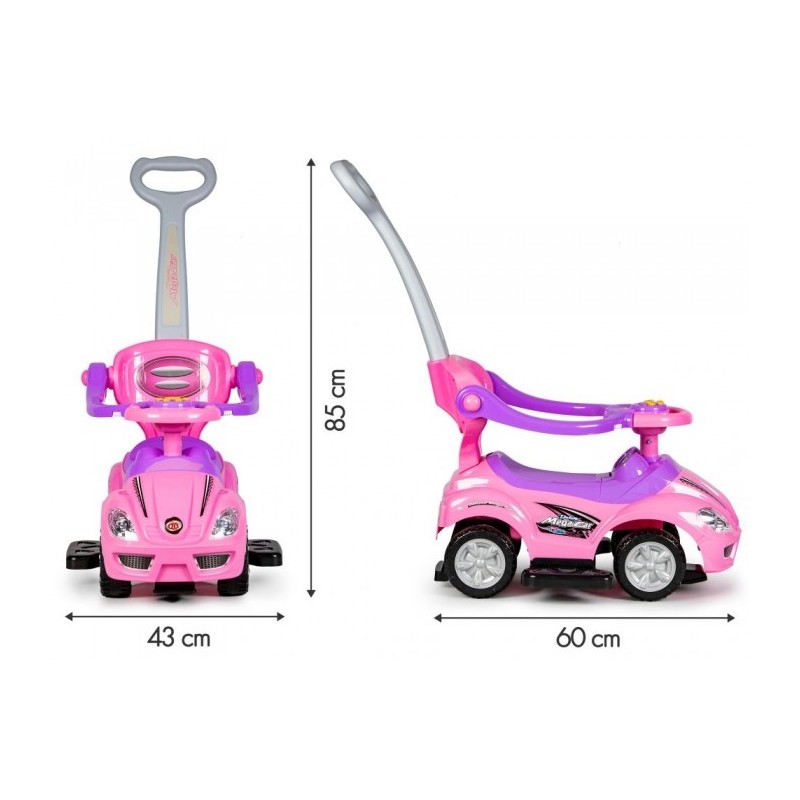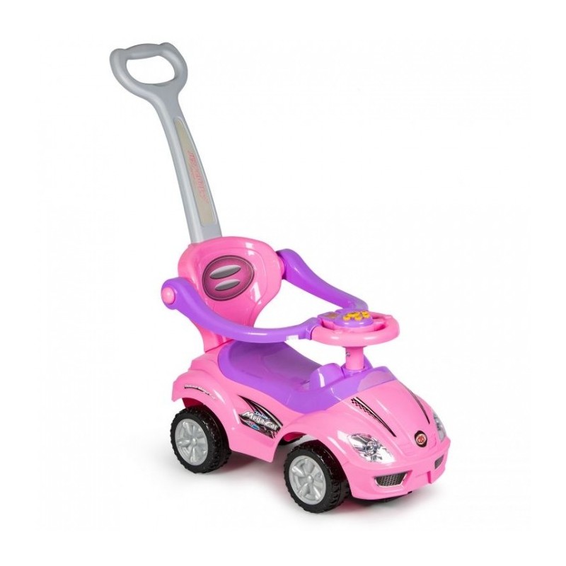 Masinuta de impins este realizata dintr-un material rezistent la orice impact. Masina poate fi modificata la alegere, astfel incat sa poata fi ajustata la varsta copilului. Barierele de protectie, suportul pentru picioare, spatarul si manerul pot fi detasate de masinuta atunci cand copilul este pregatit pentru asta. Rotile pivotante din fata sunt controlate de catre copil cu ajutorul volanului, care are incorporat si sunet de claxon. Sub scaun exista o ascunzatoare mare.
