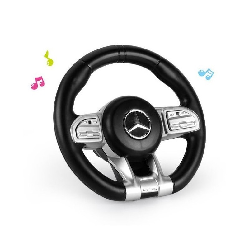 Volanul are butoane care activeaza claxonul, melodiile si LED-urile care sunt dispuse in faruri.