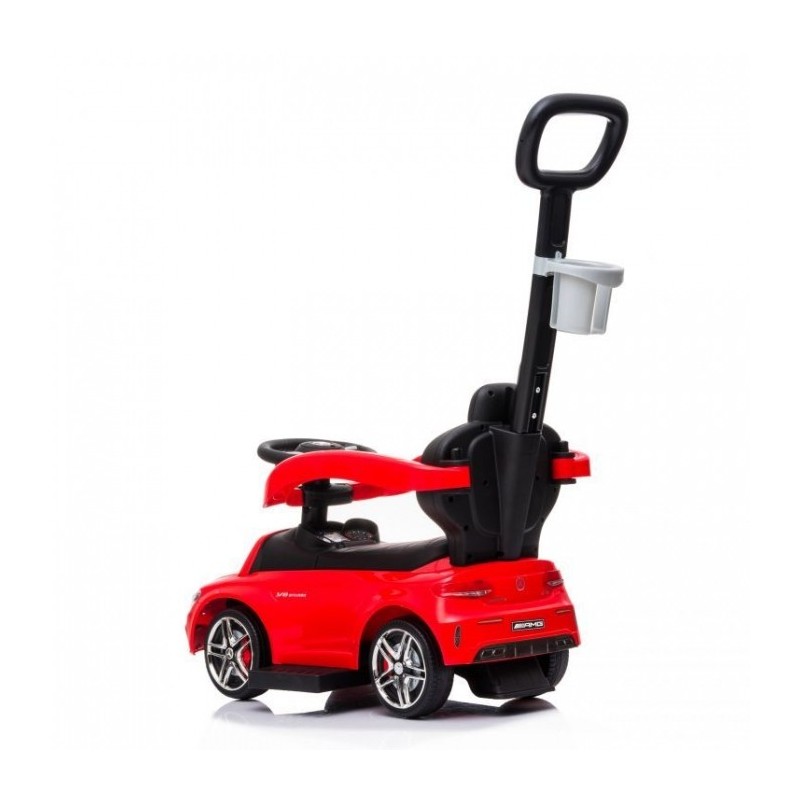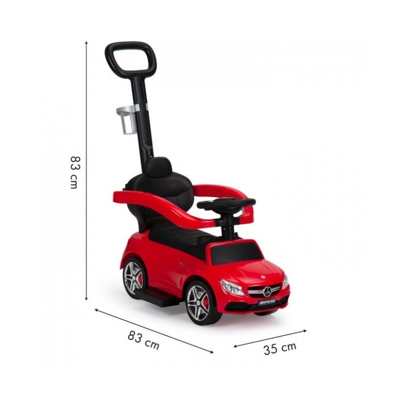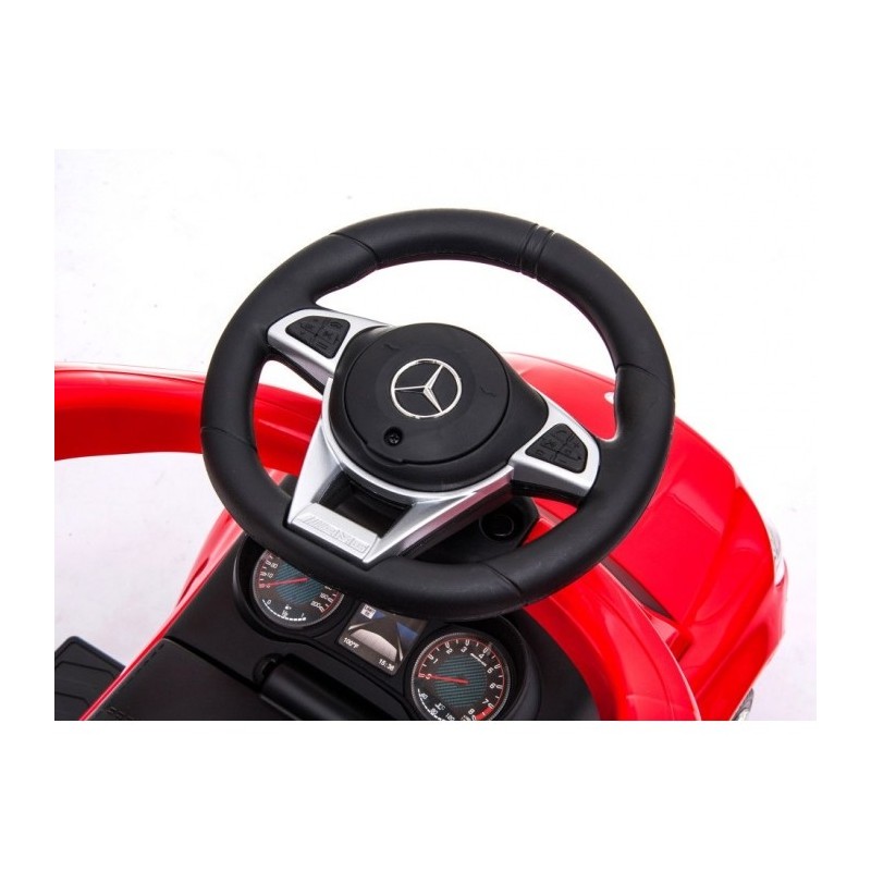 Masina contine un picior care impiedica rasturnarea ei. In plus, siguranta este asigurata de catre barierele de siguranta. Prezinta si un maner pentru a putea fi controlata si impinsa de catre parinte. Masinuta dezvolta abilitatile motorii, perceptia si chiar elementele de baza ale miscarii. Datorita volanului sau multimedia, masina atrage atentia celor mici si face din masinuta de impins jucaria preferata.