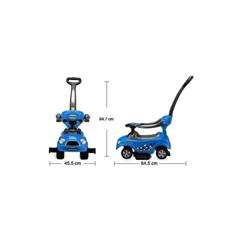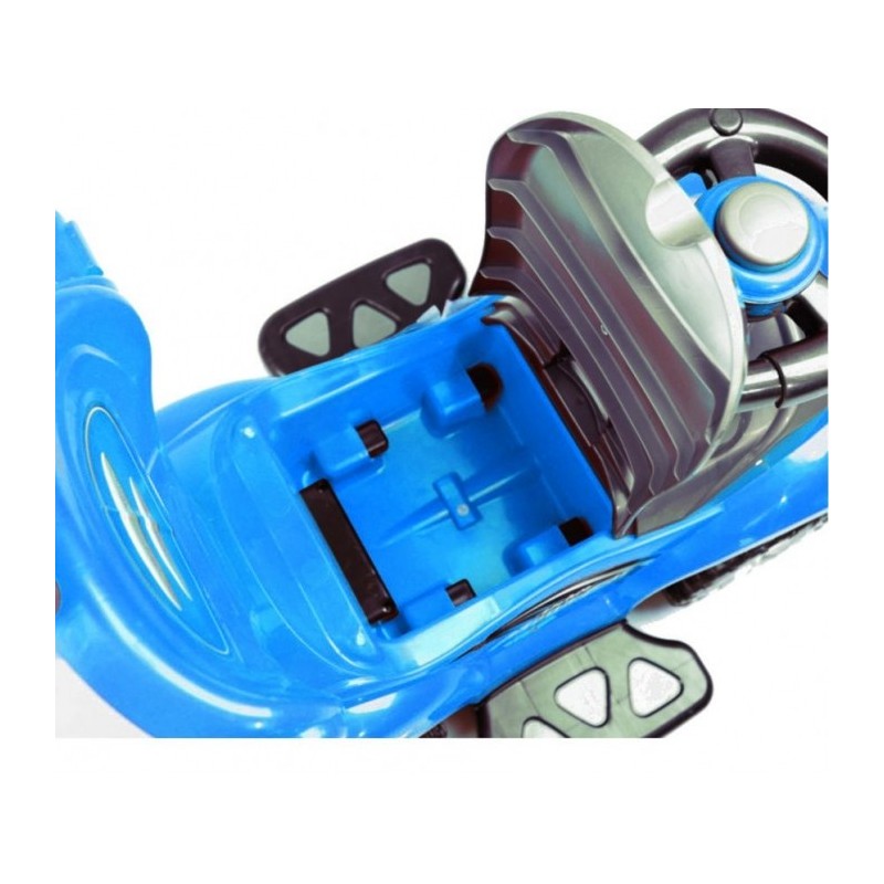 Masinuta de impins este realizata dintr-un material rezistent la orice impact. Masina poate fi modificata la alegere, astfel incat sa poata fi ajustata la varsta copilului. Barierele de protectie, suportul pentru picioare, spatarul si manerul pot fi detasate de masinuta atunci cand copilul este pregatit pentru asta. Rotile pivotante din fata sunt controlate de catre copil cu ajutorul volanului, care are si un panou de muzica incorporat si sunet de claxon.